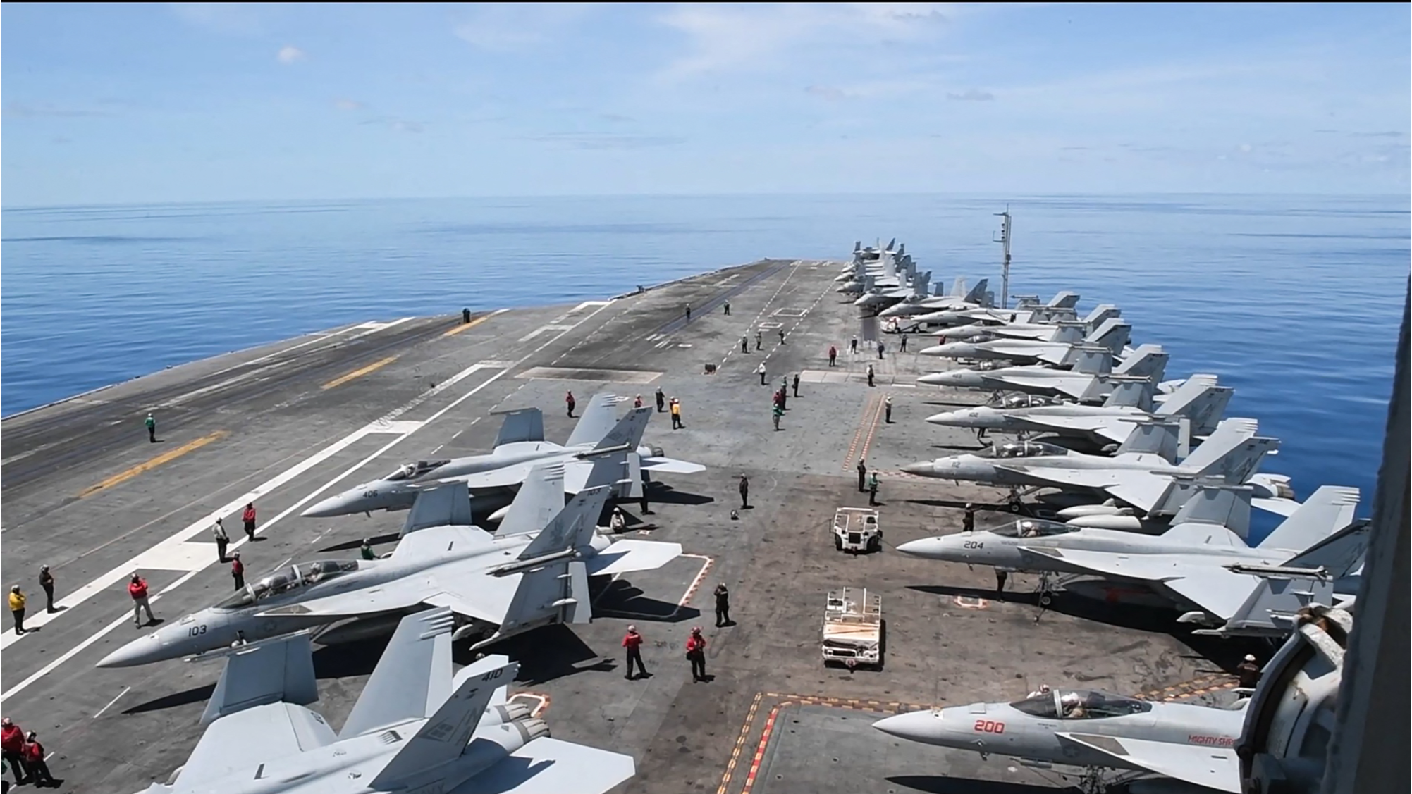 Handout released by US Defence Visual Information Distribution Service (DVIDS) on June 11, 2025 shows the aircraft carrier USS Nimitz (CVN 68) conducting flight operations in South China Sea, May 28, 2025. (PHOTO / AFP)