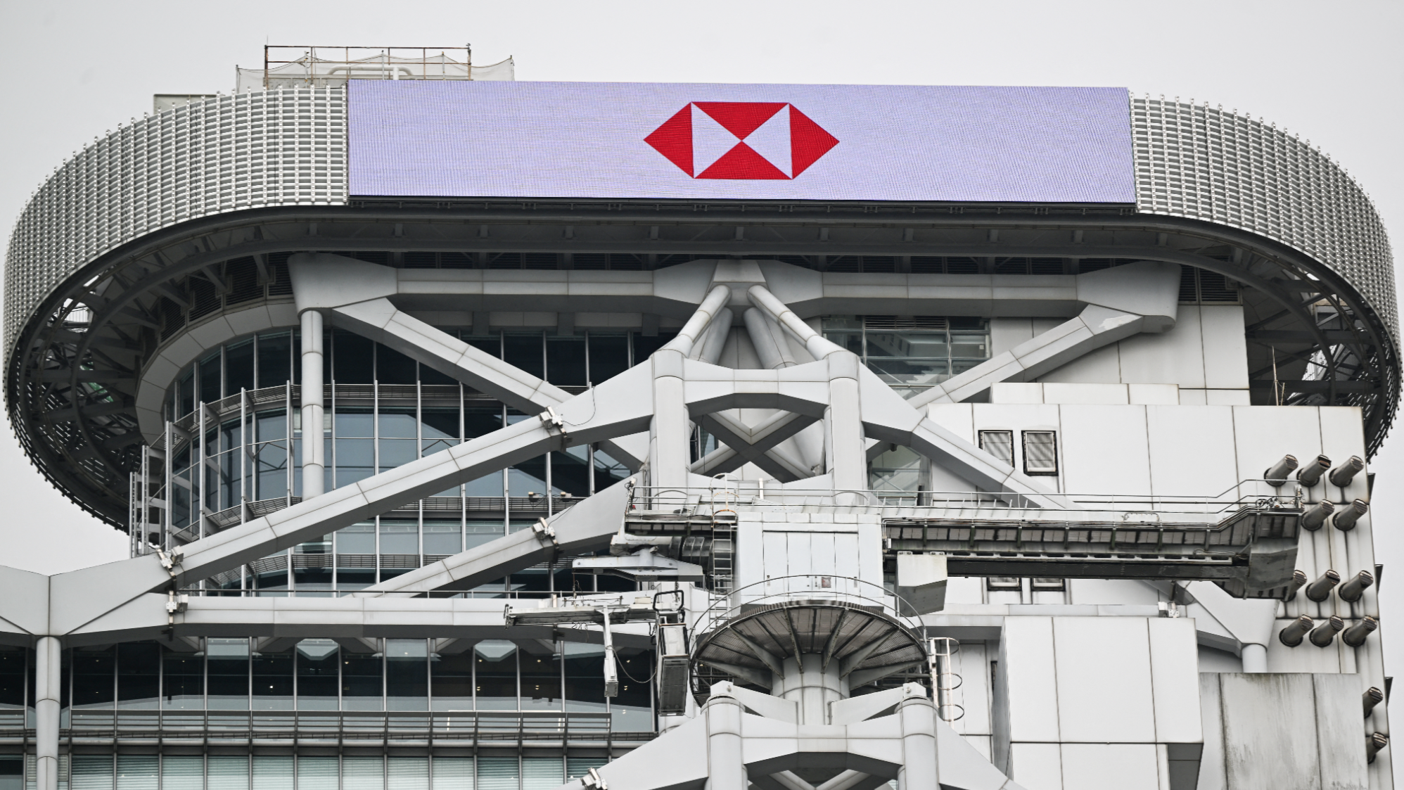 The HSBC logo is seen at the top of their building in Hong Kong on February 19, 2025, ahead of their annual results announcement. (PHOTO / AFP)