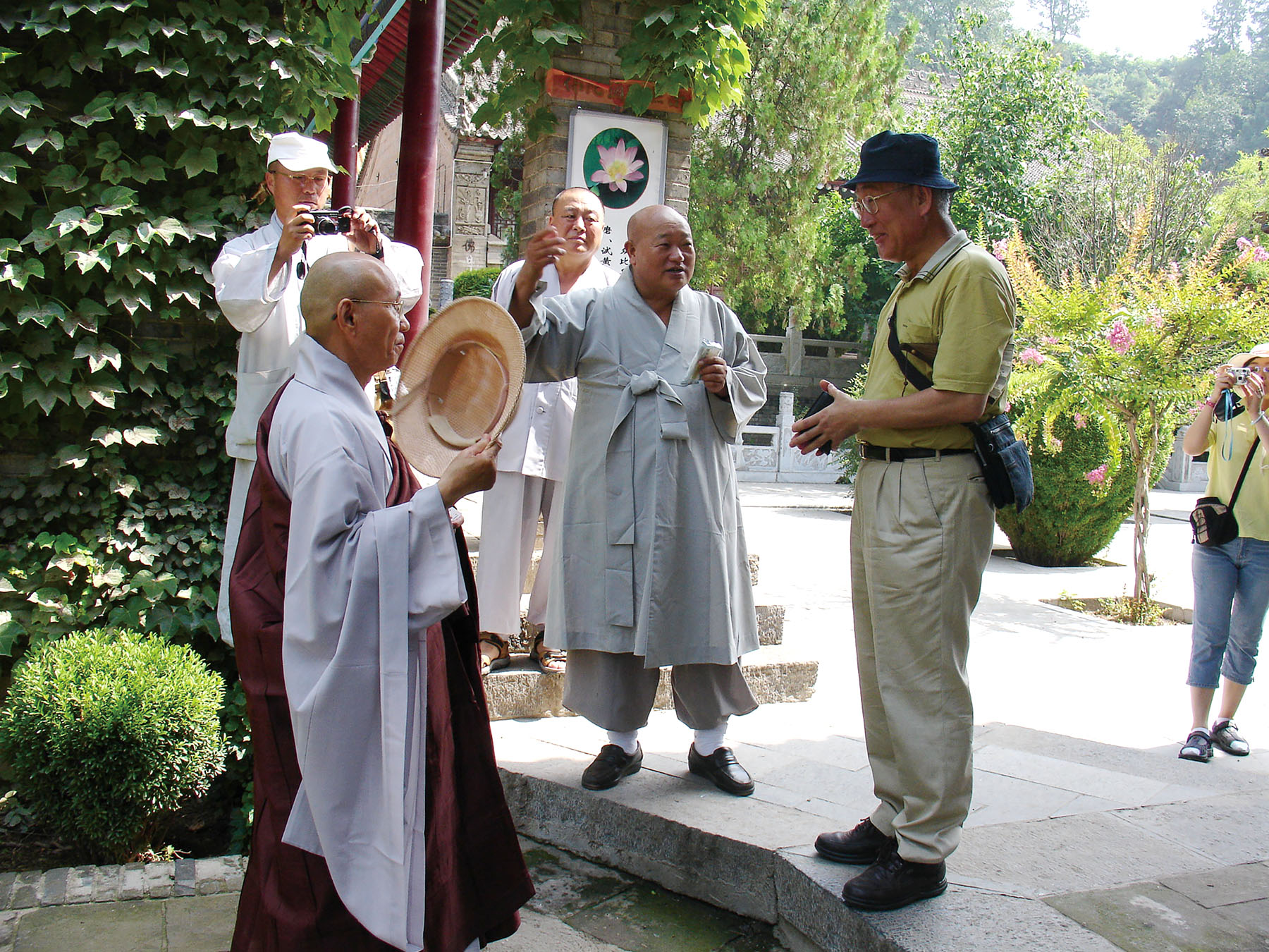 The abbot of Bulguksa Temple in Gyeongju (center) visits Xingjiao Temple in Xi'an in 2005. (PROVIDED TO CHINA DAILY)
