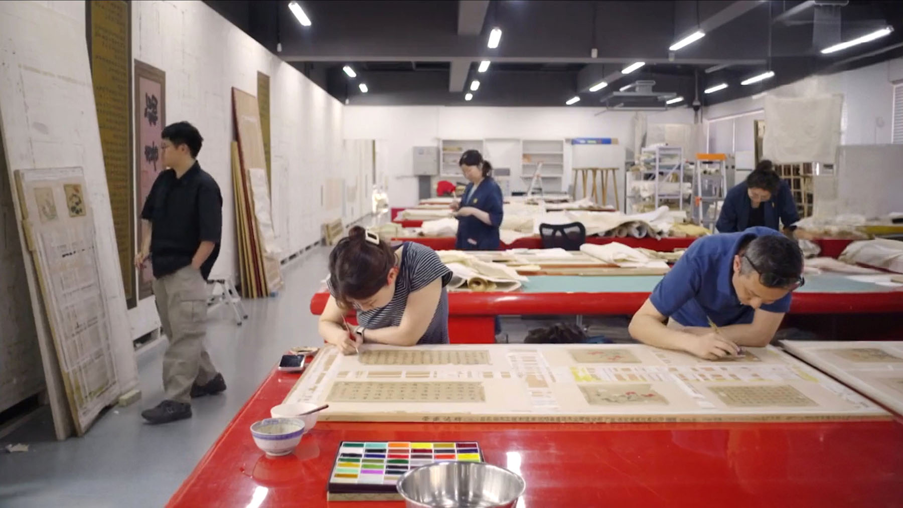 The veterans' expertise has also drawn the attention of international restorers who come to learn from them. One such scene features 75-year-old master restorer Xu Jianhua, who lectures on the repair and conservation of a portrait depicting a Buddhist monk with close ties to Qing Dynasty Emperor Yongzheng.