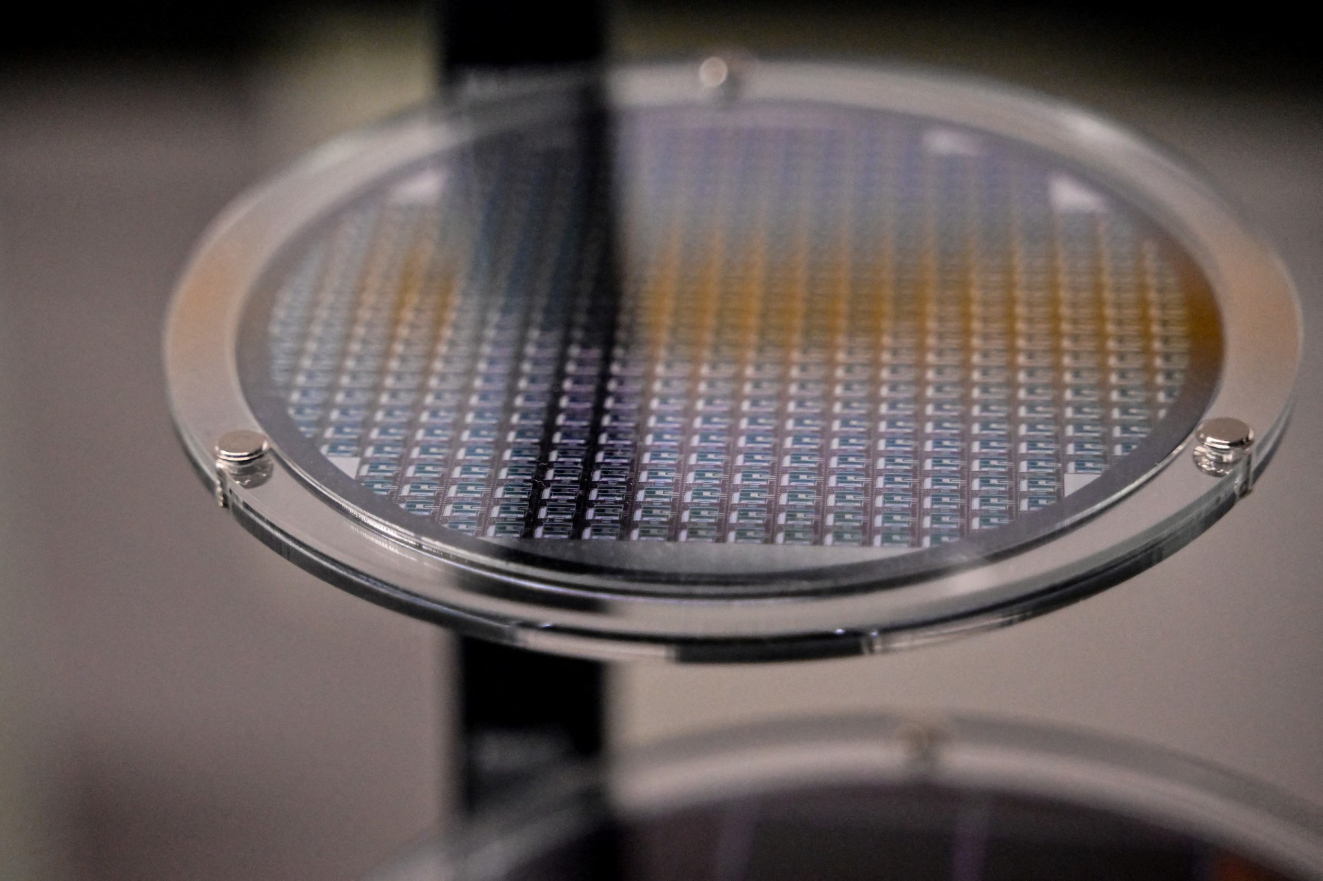 This file photo taken on Jan 26, 2024 shows a close-up of a wafer, used in semiconductor technology, on display at the Nikon Museum, at the headquarters of Japanese optics and imaging firm Nikon in the Shinagawa area of Tokyo. (PHOTO / AFP)