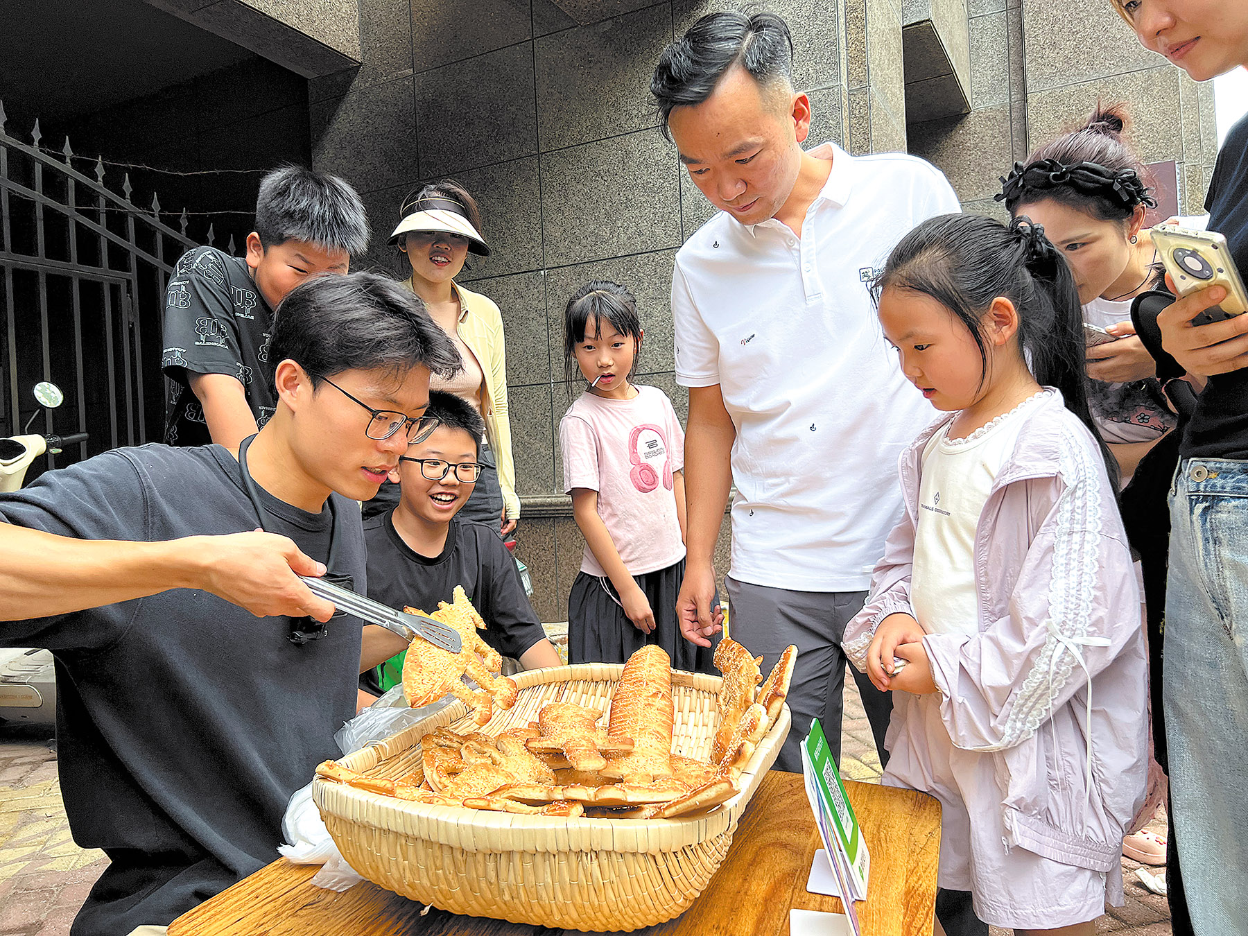 Xiao Yang's artistically crafted flatbreads attract buyers to his stall in Zhengzhou, Henan province. (PROVIDED TO CHINA DAILY)