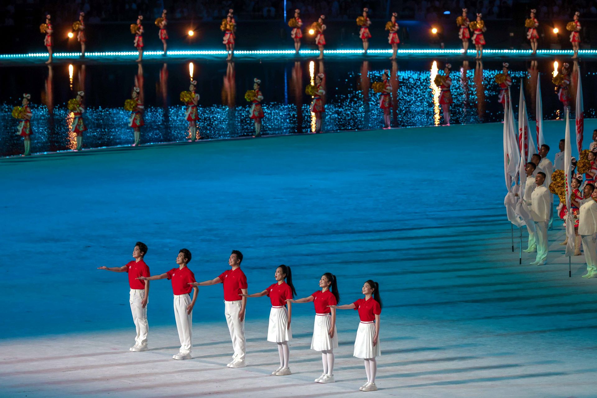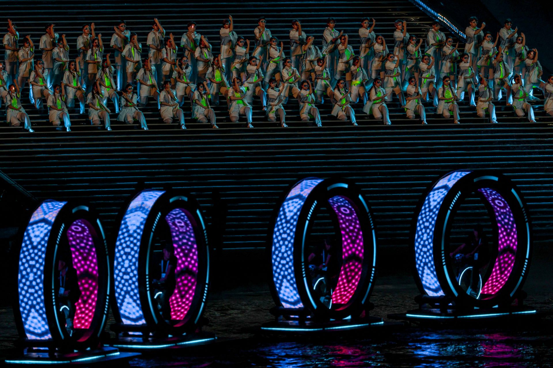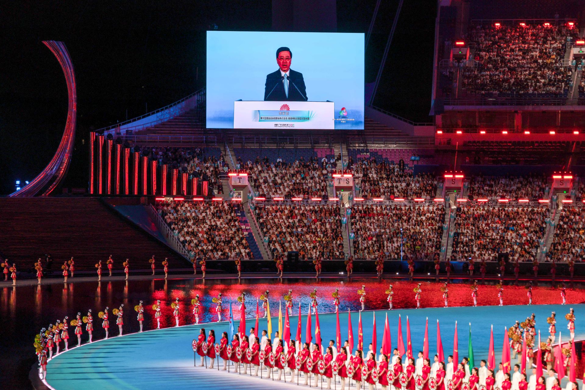 Performers are seen during  the opening ceremony of the 15th National Games at the Gangdong Olympic Sports center in Guangzhou on Nov 9, 2025. (ANDY CHONG/CHINA DAILY)