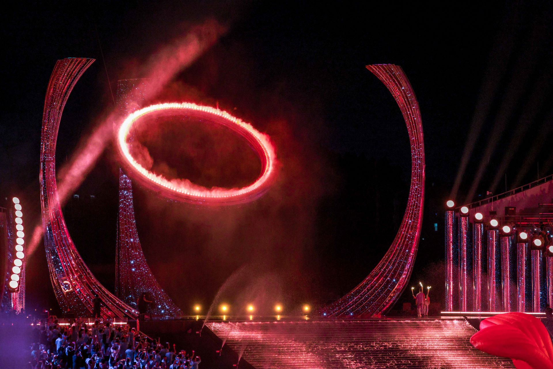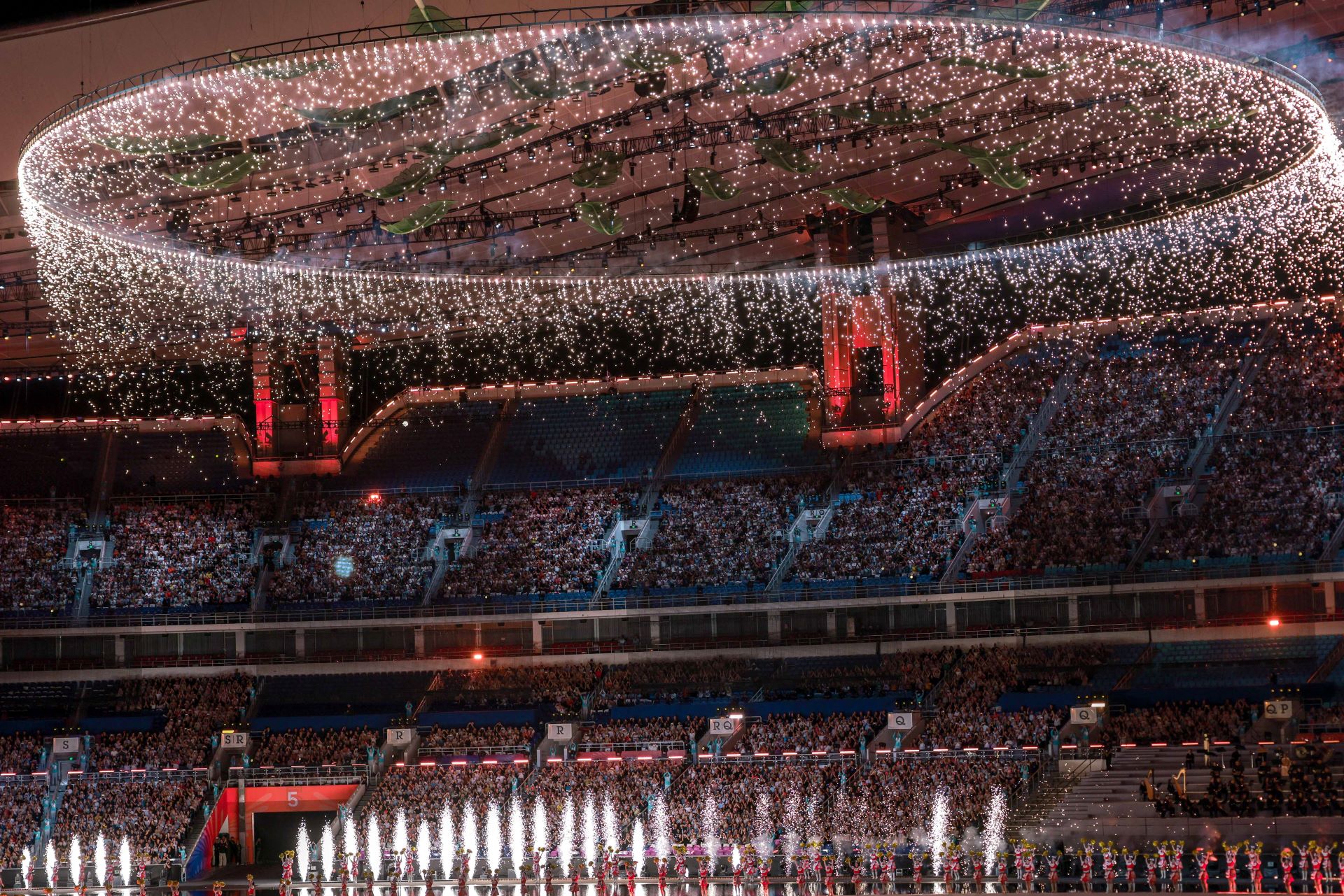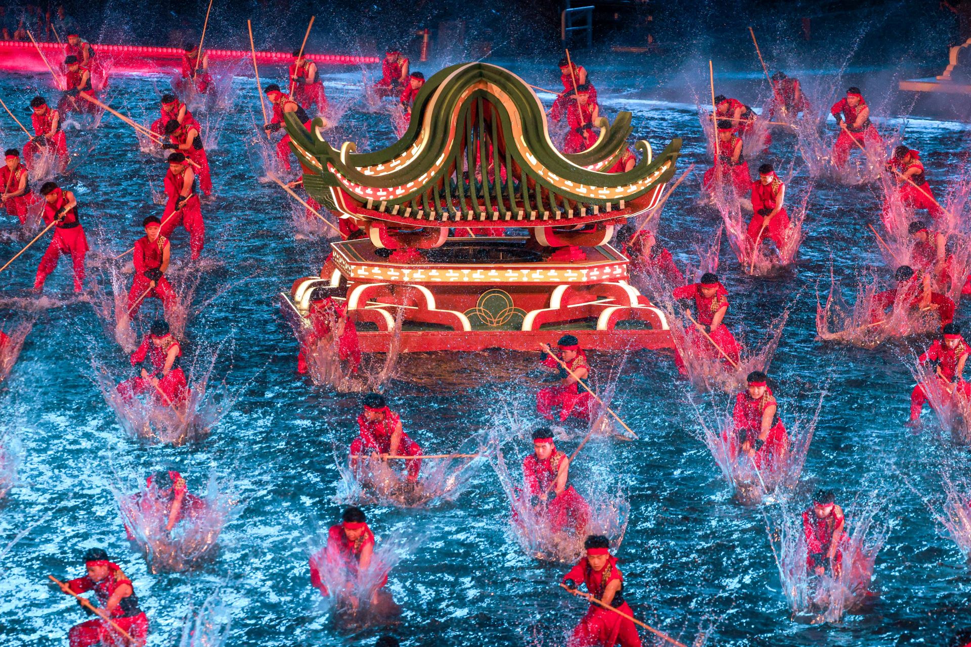 Performers are seen during  the opening ceremony of the 15th National Games at the Gangdong Olympic Sports center in Guangzhou on Nov 9, 2025. (ANDY CHONG/CHINA DAILY)