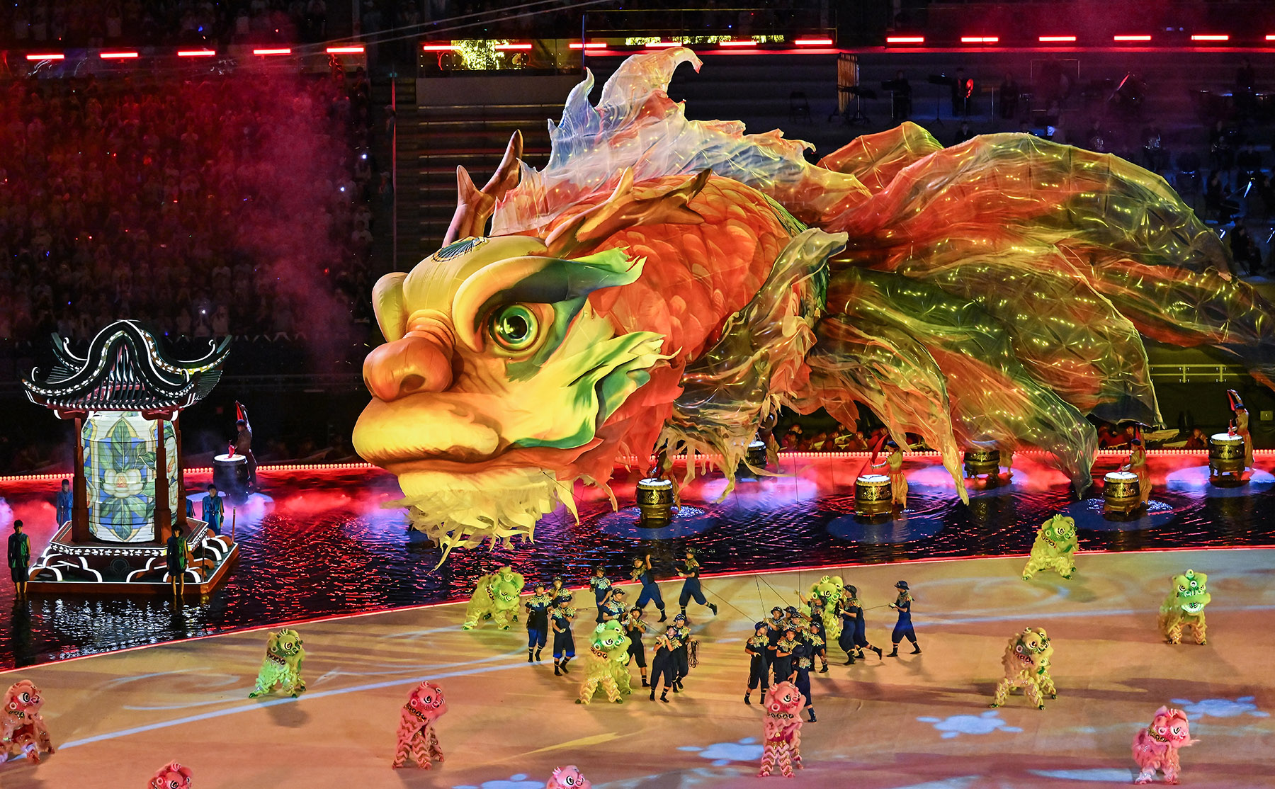 A mythical dragon-fish reborn as a glowing airborne masterpiece is a dazzling highlight of China's National Games, report Xing Wen in Zhuhai and Li Wenfang in Guangzhou.