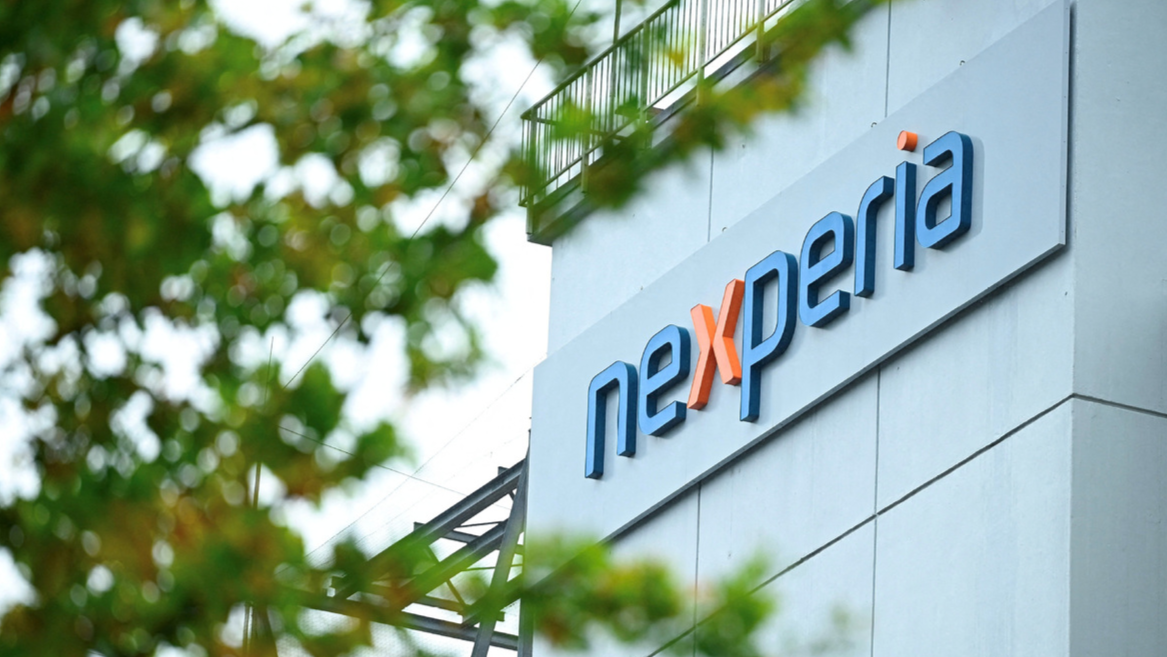 The logo of Chinese-owned semiconductor company Nexperia is displayed at the chipmaker's German facility, after the Dutch government seized control and auto industry bodies sounded the alarm over the possible impact on car production, in Hamburg, Germany, October 23, 2025. (PHOTO / REUTERS)