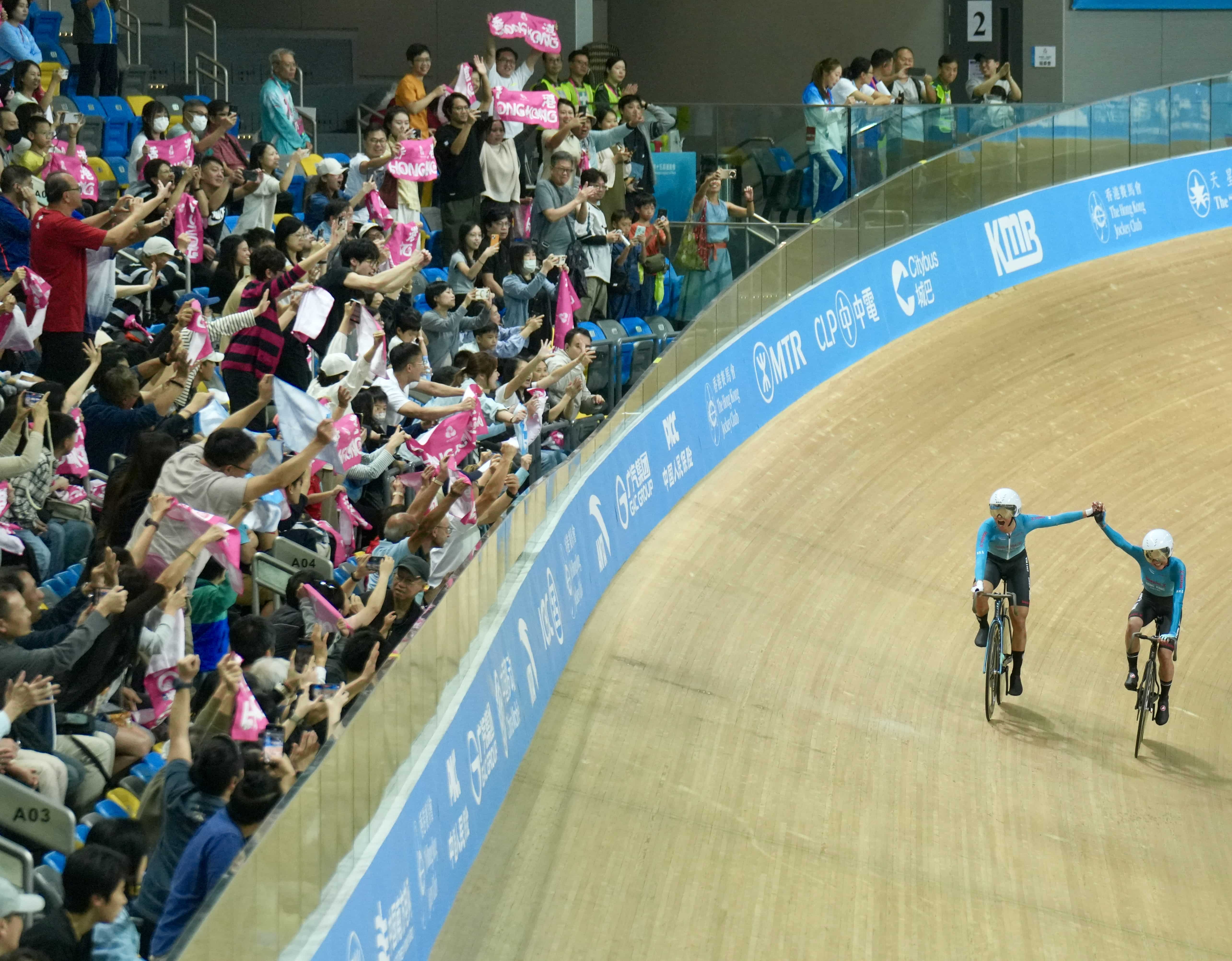 Lee Sze-wing and Leung Wing-yee of the Hong Kong team adopted an energetic and ambitious strategy in the women’s madison final during the track cycling competition, winning the championship with a total score of 45 points.