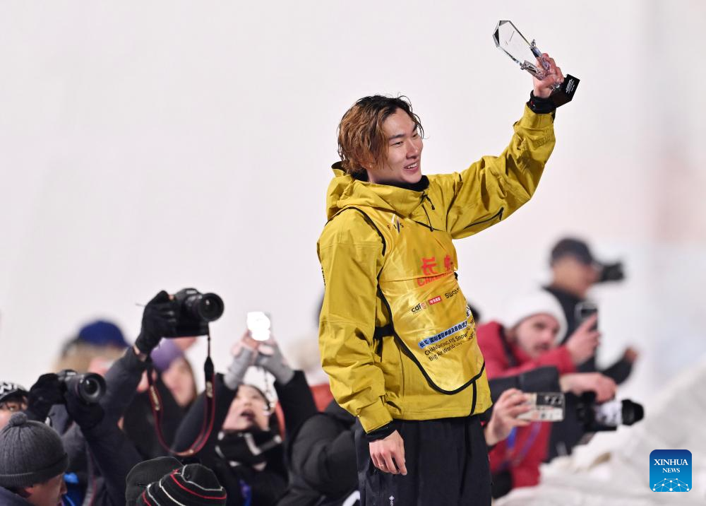 BEIJING - China's Olympic champion Su Yiming survived a late scare in his final run to clinch gold in the men's event at the FIS Snowboard Big Air World Cup here on Saturday, securing back-to-back victories this season.
