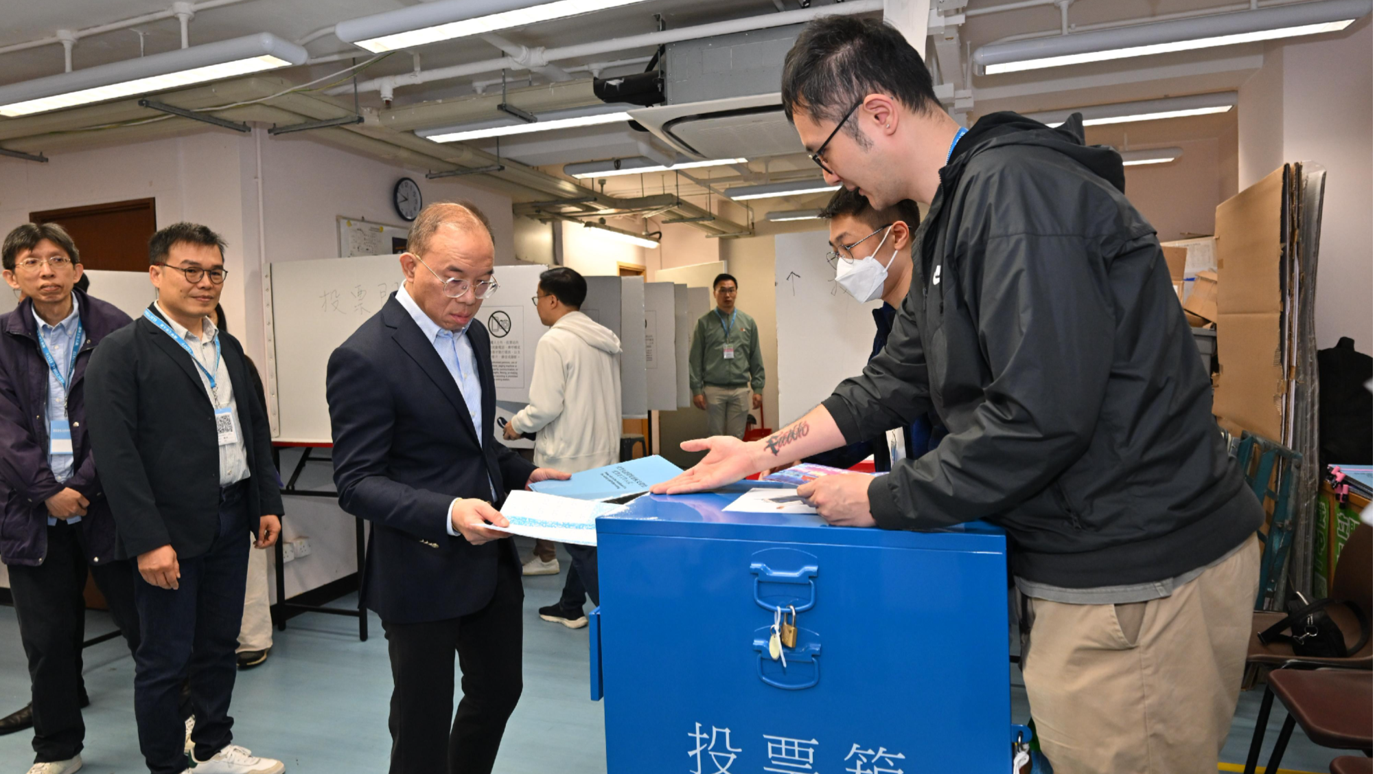 Hong Kong Chief Executive John Lee Ka-chiu arrived at the Raimondi College polling station in the Mid Levels area shortly after 8:30 am and cast his ballot. He called on all eligible voters to cast their ballots for representatives who will “drive reform and safeguard disaster victims”.