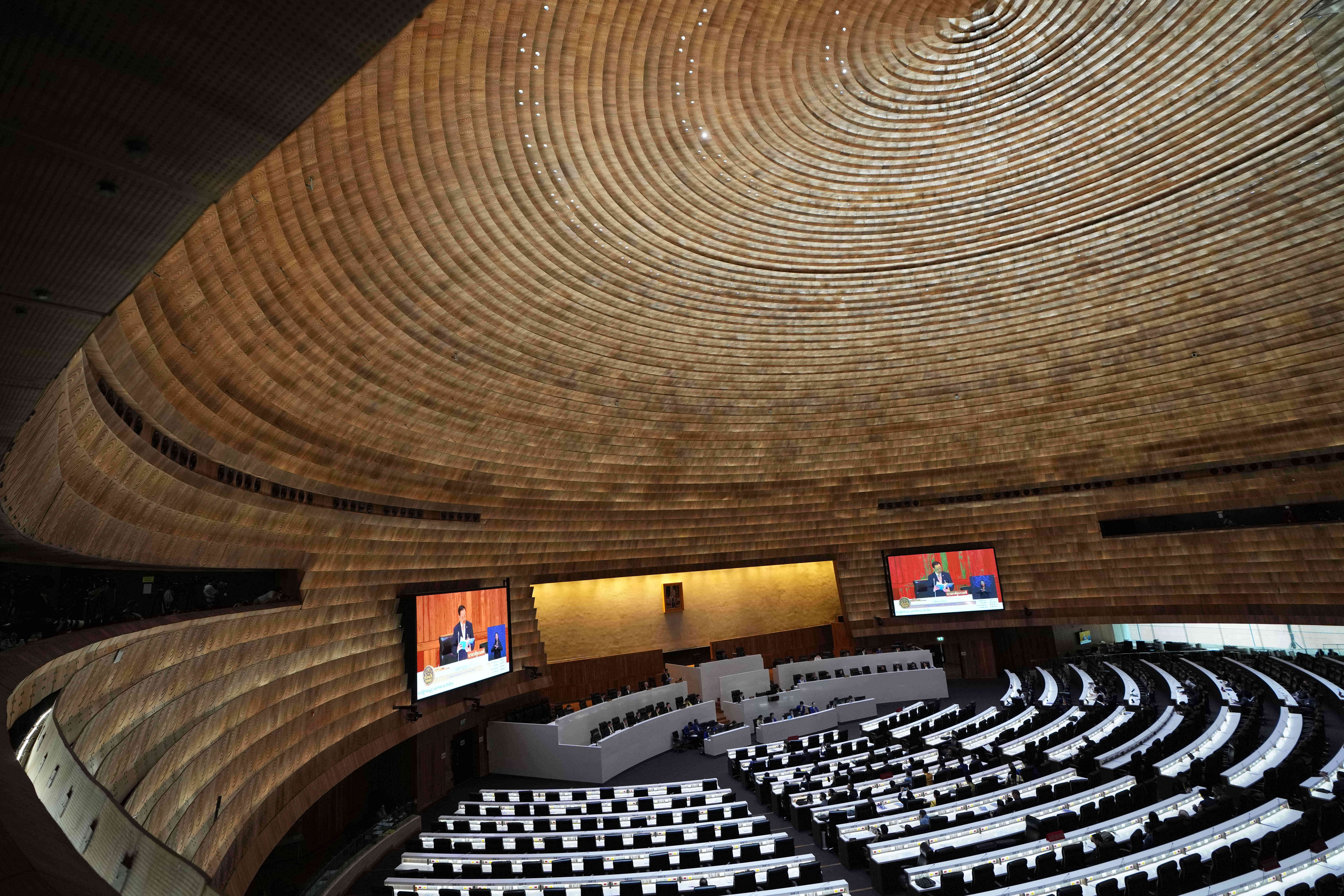Thailand's Prime Minister Anutin Charnvirakul presents the policy statement at the parliament in Bangkok, Thailand, Sept 29, 2025. (PHOTO / AP)