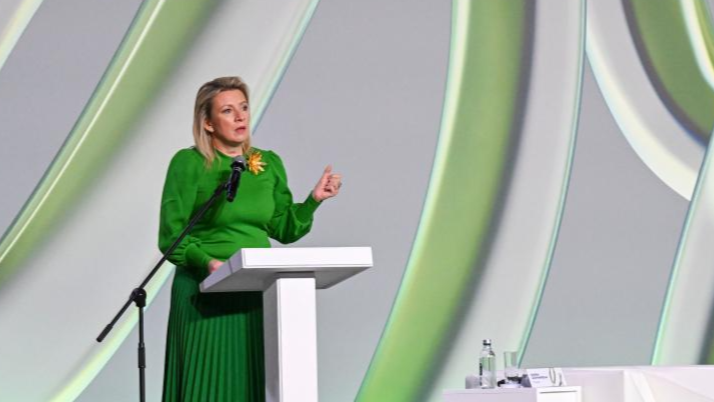 Russian Foreign Ministry spokesperson Maria Zakharova speaks at an international forum titled "Dialogue about Fakes 3.0" in Moscow, Russia, Oct 29, 2025. (PHOTO / XINHUA)