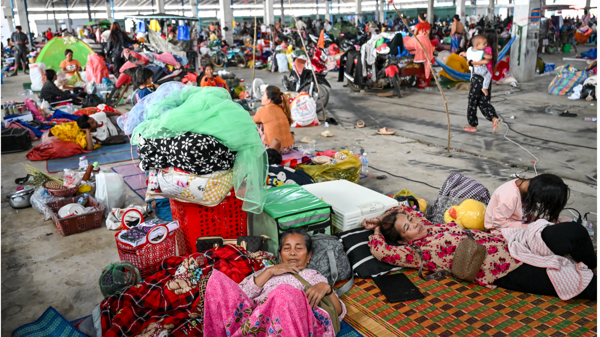 Displaced residents rest at a temporary camp in Cambodia's Banteay Meanchey province on Dec 14, 2025, amid clashes along Cambodia-Thailand border. (PHOTO/AFP)