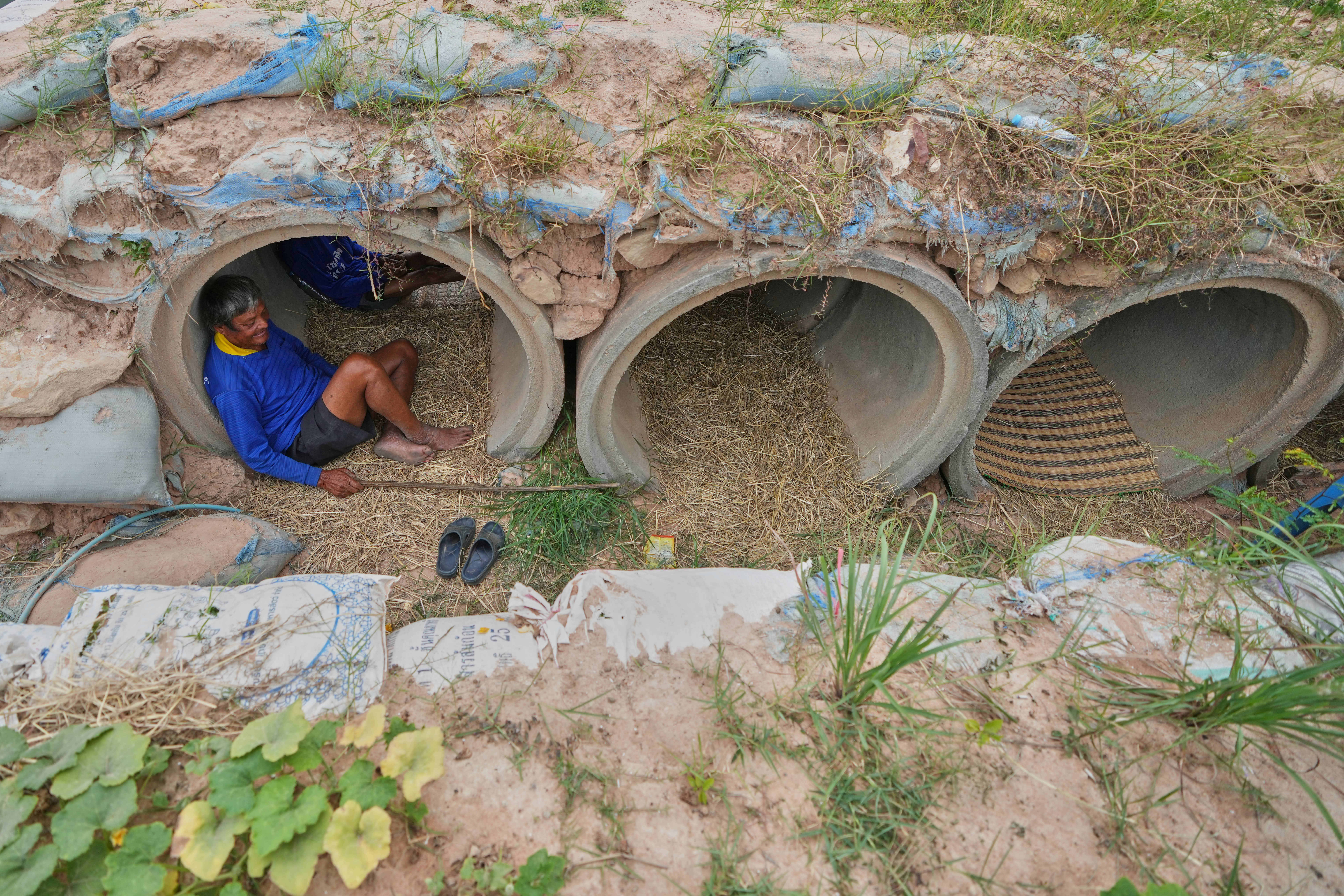 A Thai resident takes shelter in Buriram province, Thailand, Dec 12, 2025, following renewed border conflict between Thailand and Cambodia. (PHOTO/AP)