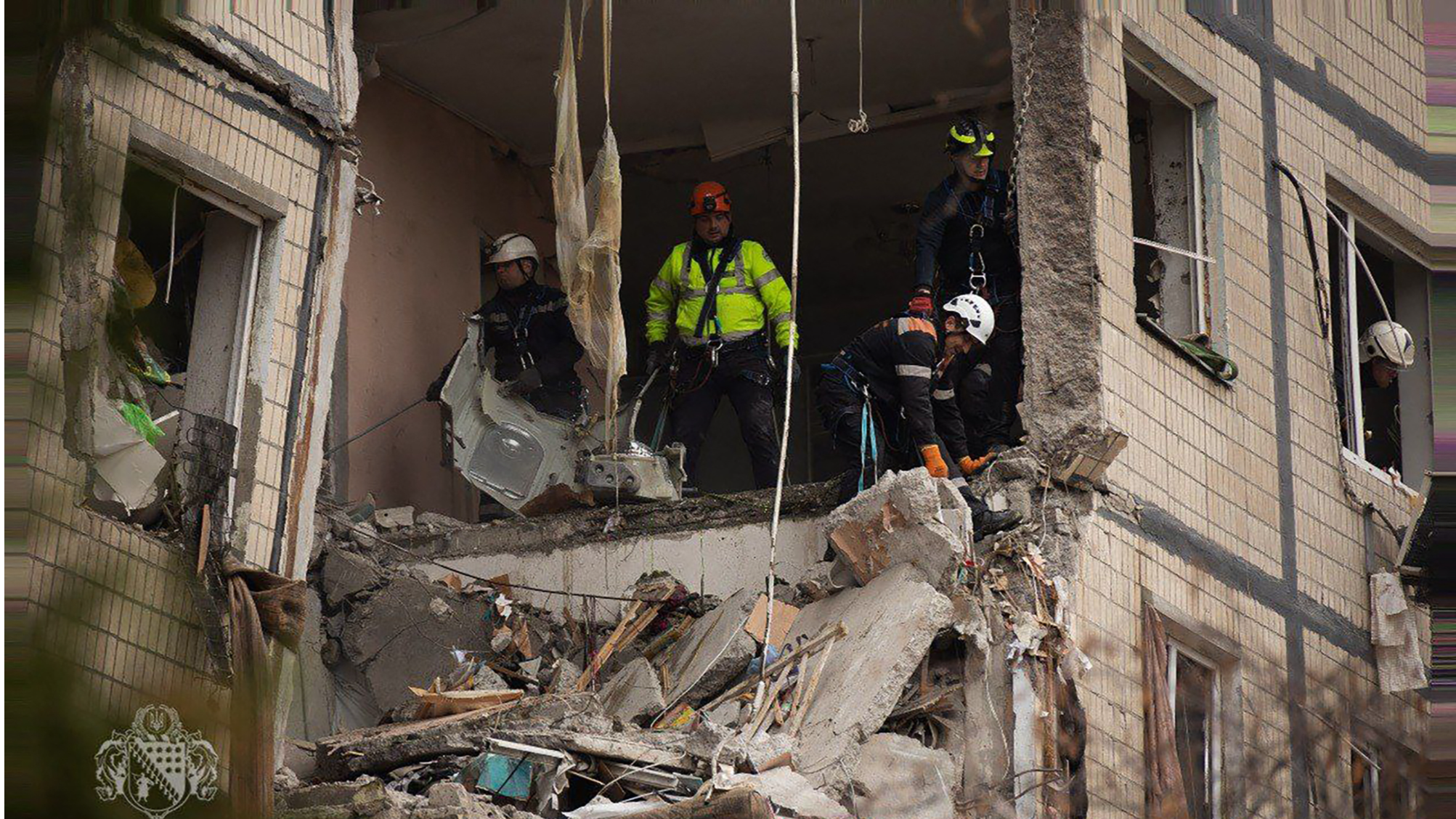 In this handout photograph taken and released by the Dnipropetrovsk Regional Military Administration on Nov 8, 2025, Ukrainian rescuers work at the site of a heavily damaged residential building following an air attack in Dnipro. (HANDOUT/DNIPROPETROVSK REGIONAL MILITARY ADMINISTRATION VIA AFP)