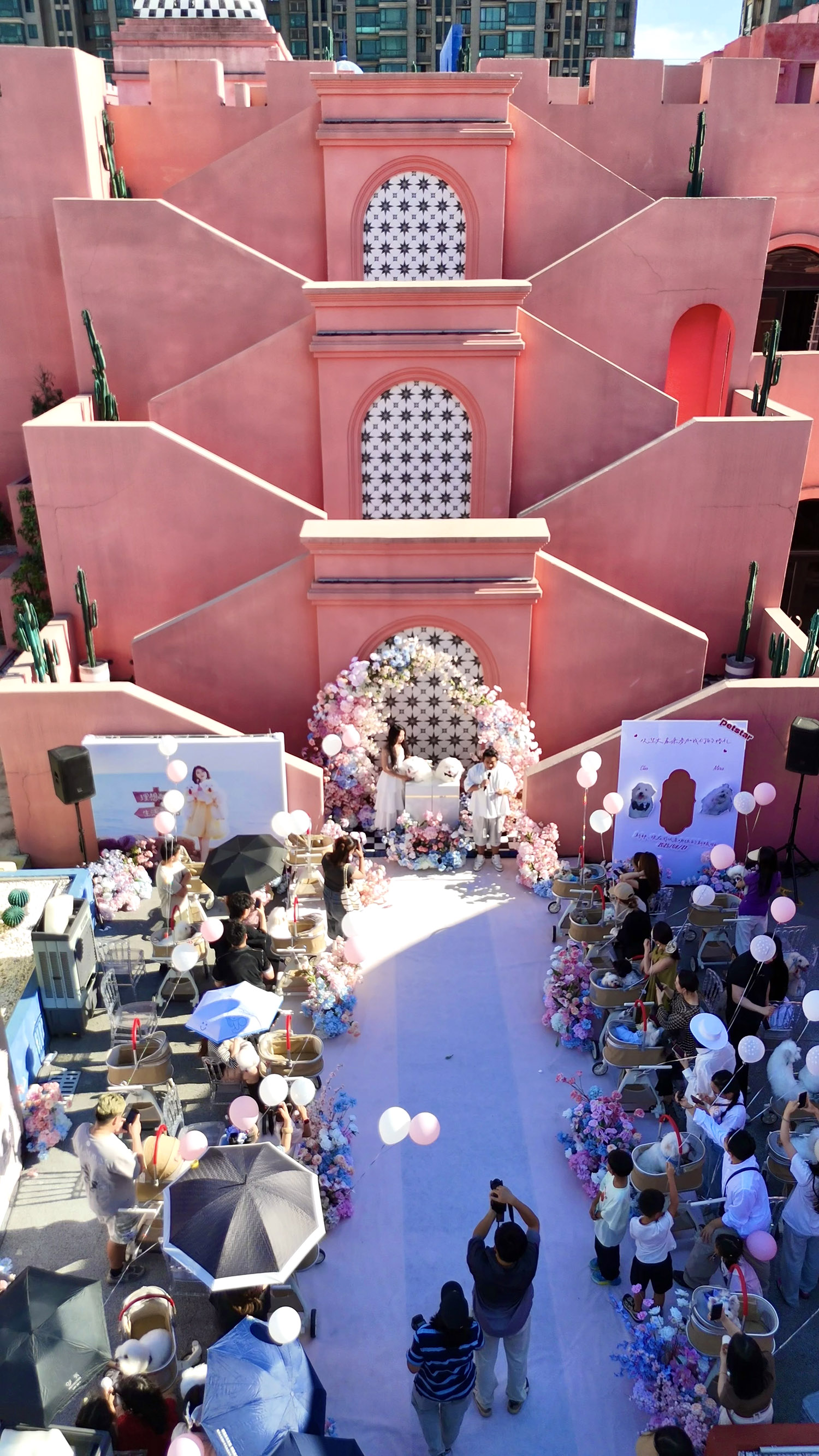 "We arranged pet strollers as gifts, set up a small stage, and had a one-hour ceremony. The most touching moment was when Elio and Mira exchanged collars — a floral one for the bride, a blue one for the groom," said Bai, who hosted the event.