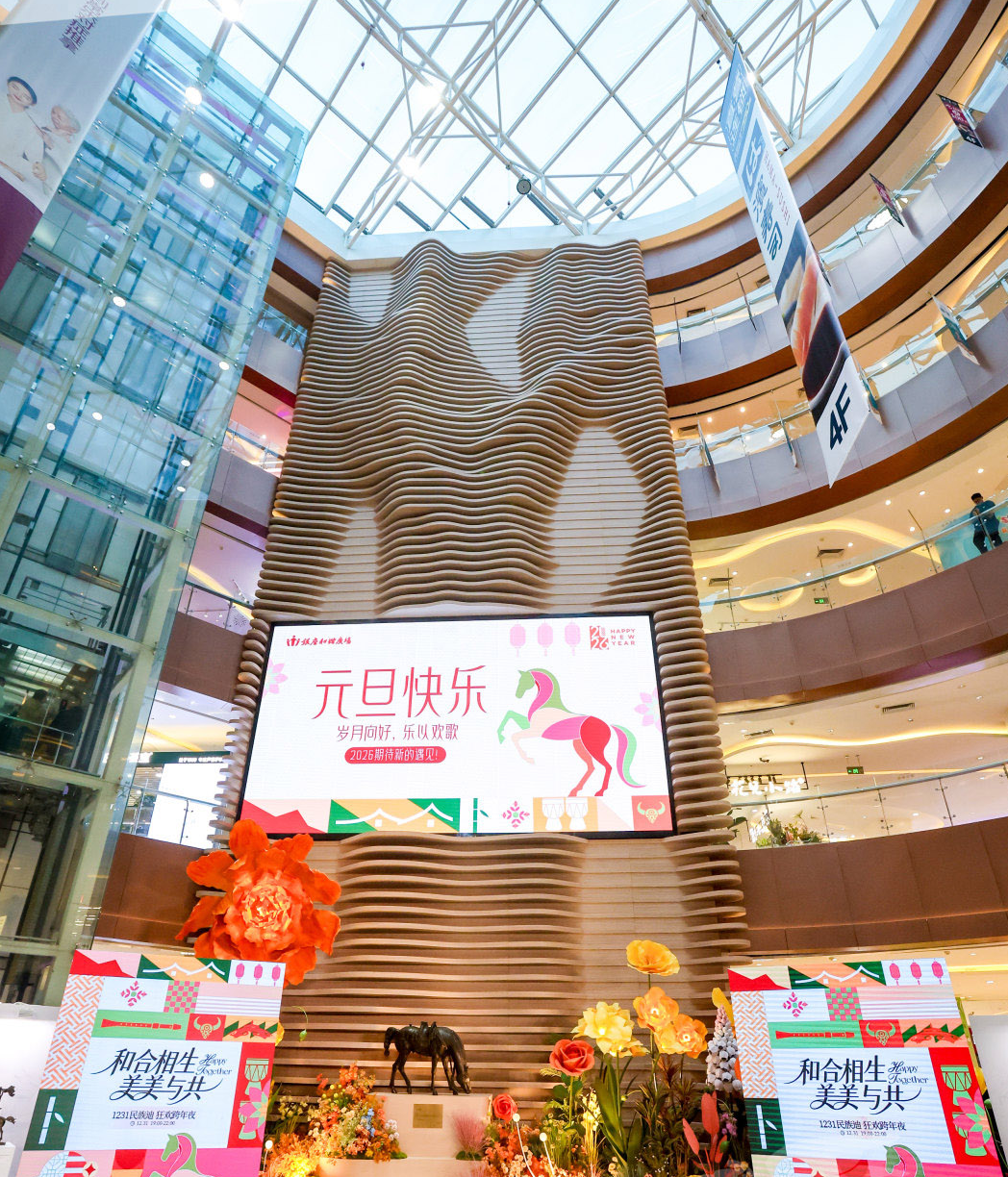 In celebration of 2026 and the Year of the Horse, the mall's first floor is dedicated to equine sculptures.