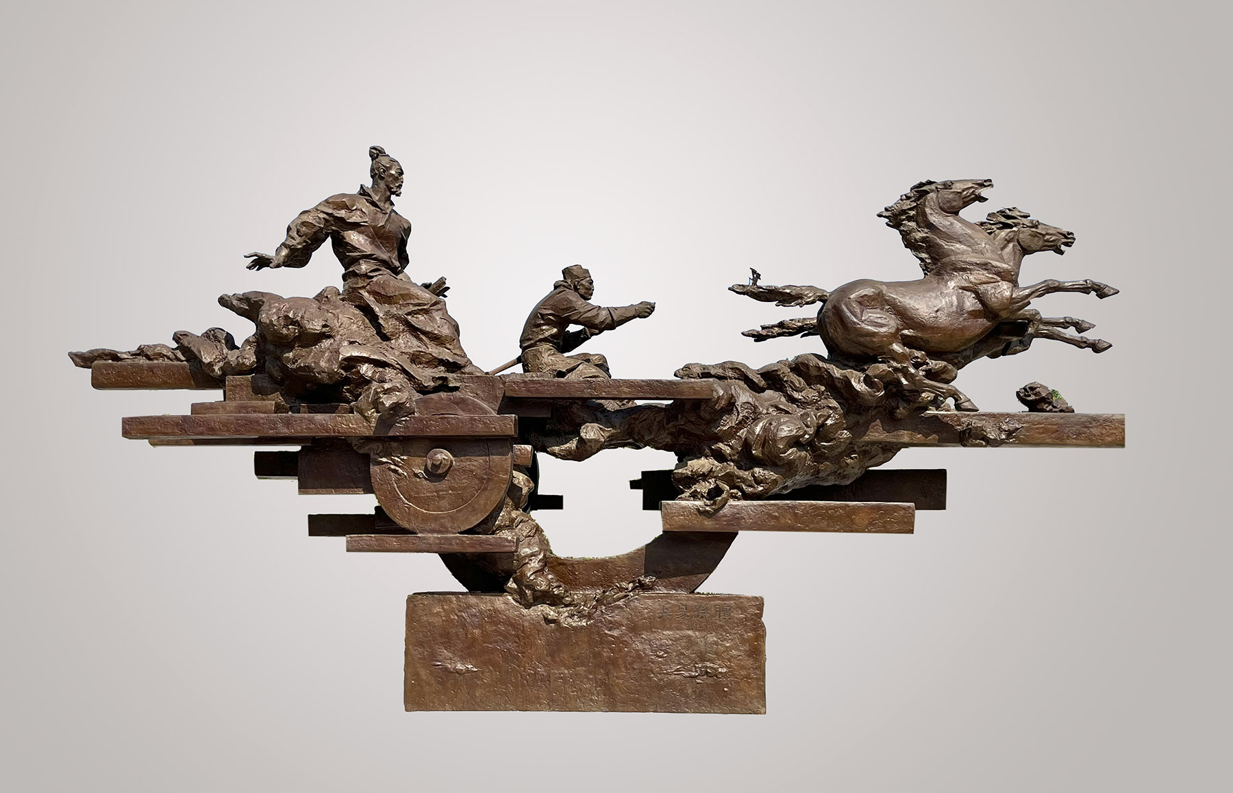 Among Sun's own horse-related works on display is The Strategist Sun Bin. As he puts it, the piece "applies Russian methods while adding Chinese romanticism". The sculpture depicts Warring States Period (475-221 BC) military strategist Sun Bin, who, despite his injuries, rides in a chariot through the clouds.