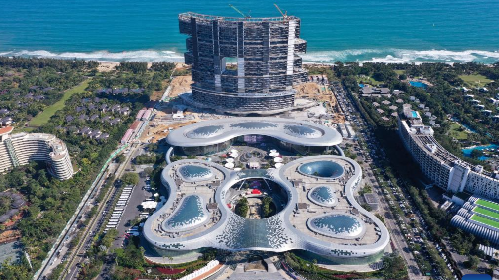 An aerial drone photo taken on Jan 10, 2026 shows a view of the Sanya International Duty Free City in Sanya, South China's Hainan province. (PHOTO / XINHUA)