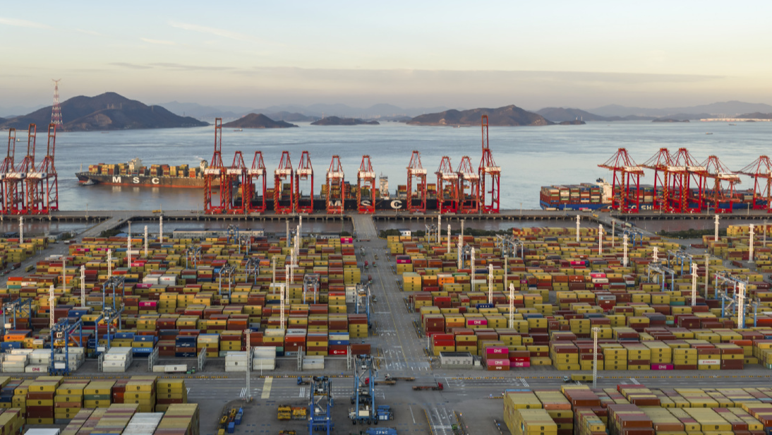 A drone photo taken on Jan 14, 2026 shows a container terminal at the Ningbo-Zhoushan Port in East China's Zhejiang province. (PHOTO / XINHUA)