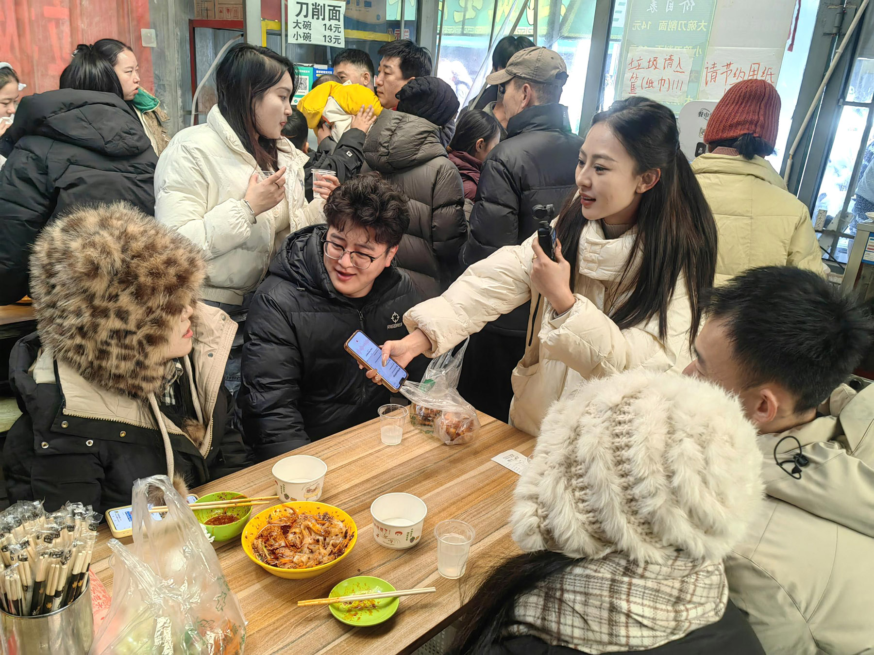 In the crowd, young people in trendy down jackets and armed with cameras cluttered the century-old market.
