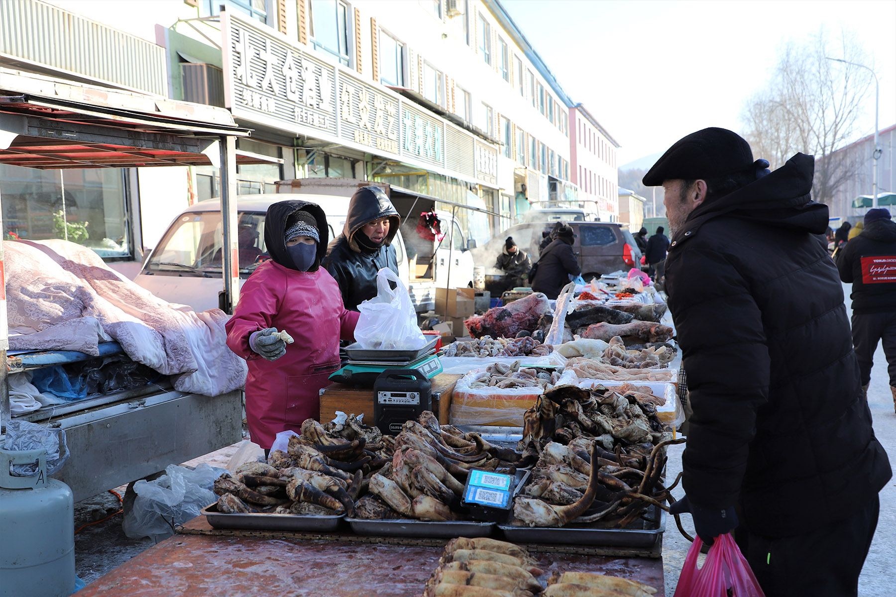 As Spring Festival approaches, the market in Quchaihe town, Jilin province, is attracting more visitors with its local food and produce. The stalls brim with treasures, such as wild mushrooms plucked from nearby mountains and Korean-style pickles.