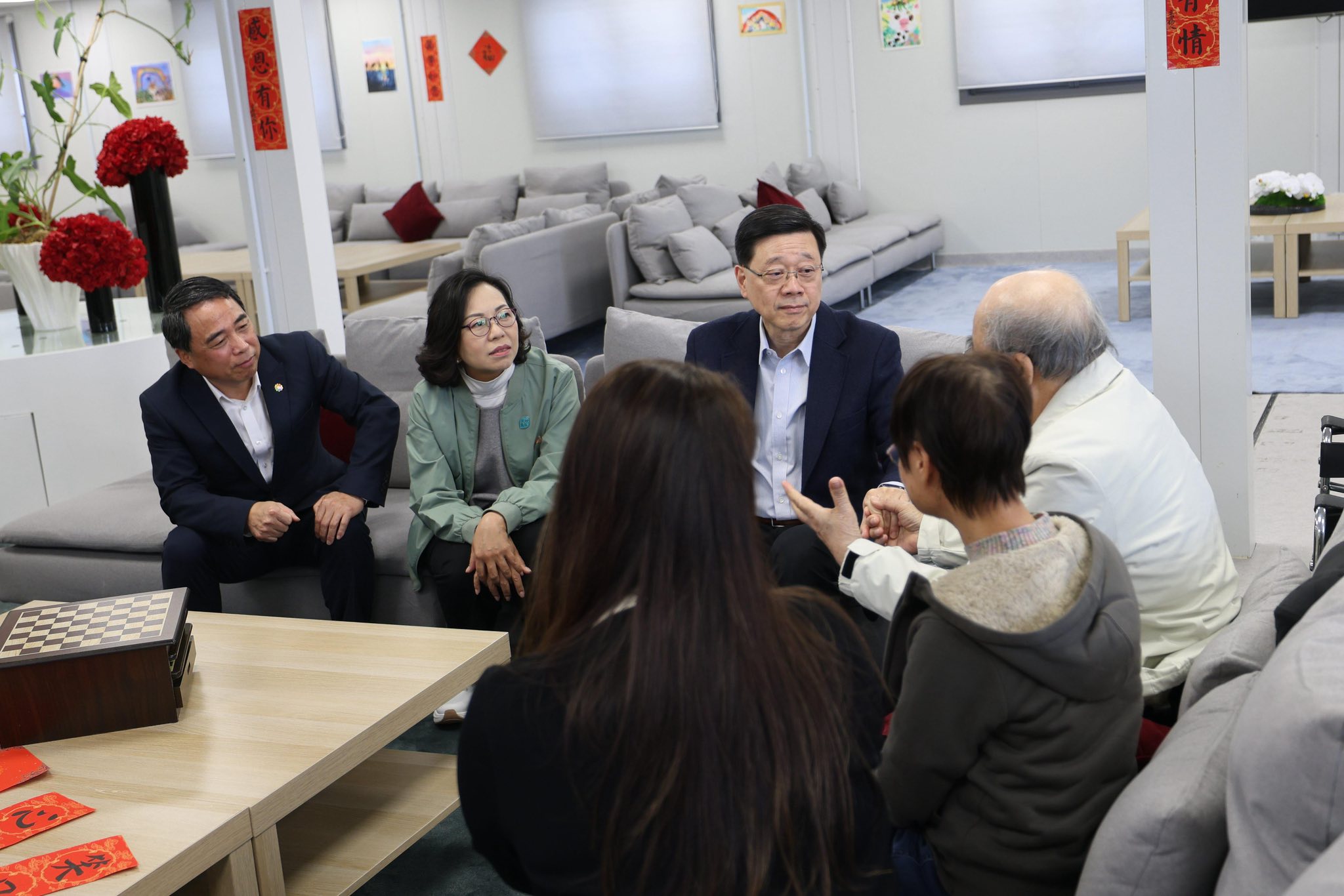 After leaving Kai Tak, Lee visited an elderly person who lives alone and an elderly couple family in Yau Ma Tei’s Prosperous Garden. He also toured the estate’s elderly community center, singing and playing games with a group of seniors to celebrate Chinese New Year.