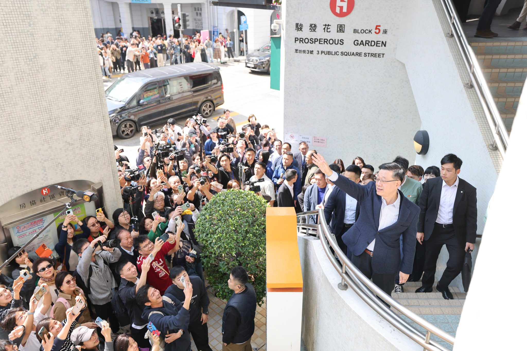 During the visits, Lee talked to the residents, asking about their health conditions, and stressed the importance of living environment. He also waved to visitors and thanked them in both Mandarin and Cantonese for coming to Hong Kong.