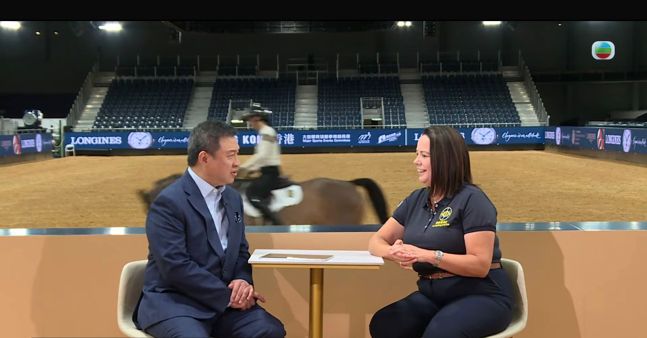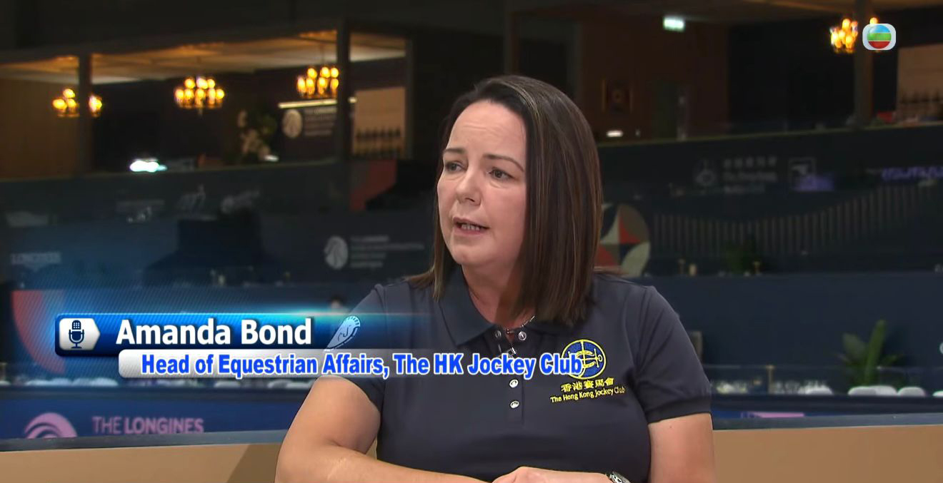 Chan: Welcome to Straight Talk! I'm Eugene Chan. We are now at the Asia World Expo with Amanda Bond, who is the head of Equestrian Affairs at the Hong Kong Jockey Club. Amanda joined the Hong Kong Jockey Club in 2014, following five years as CEO of British Dressage, during which Great Britain achieved outstanding Olympic and Paralympic success. She has more than 30 years' experience in international equestrian sport, including work on several Olympic and Paralympic Games, and major FEI championships. Amanda is chair of the FEI Pair Equestrian Technical Committee, and a board member of the FEI, which is the Federation of International Equestrian Sports, and she oversees all Equestrian Affairs at the Jockey Club.