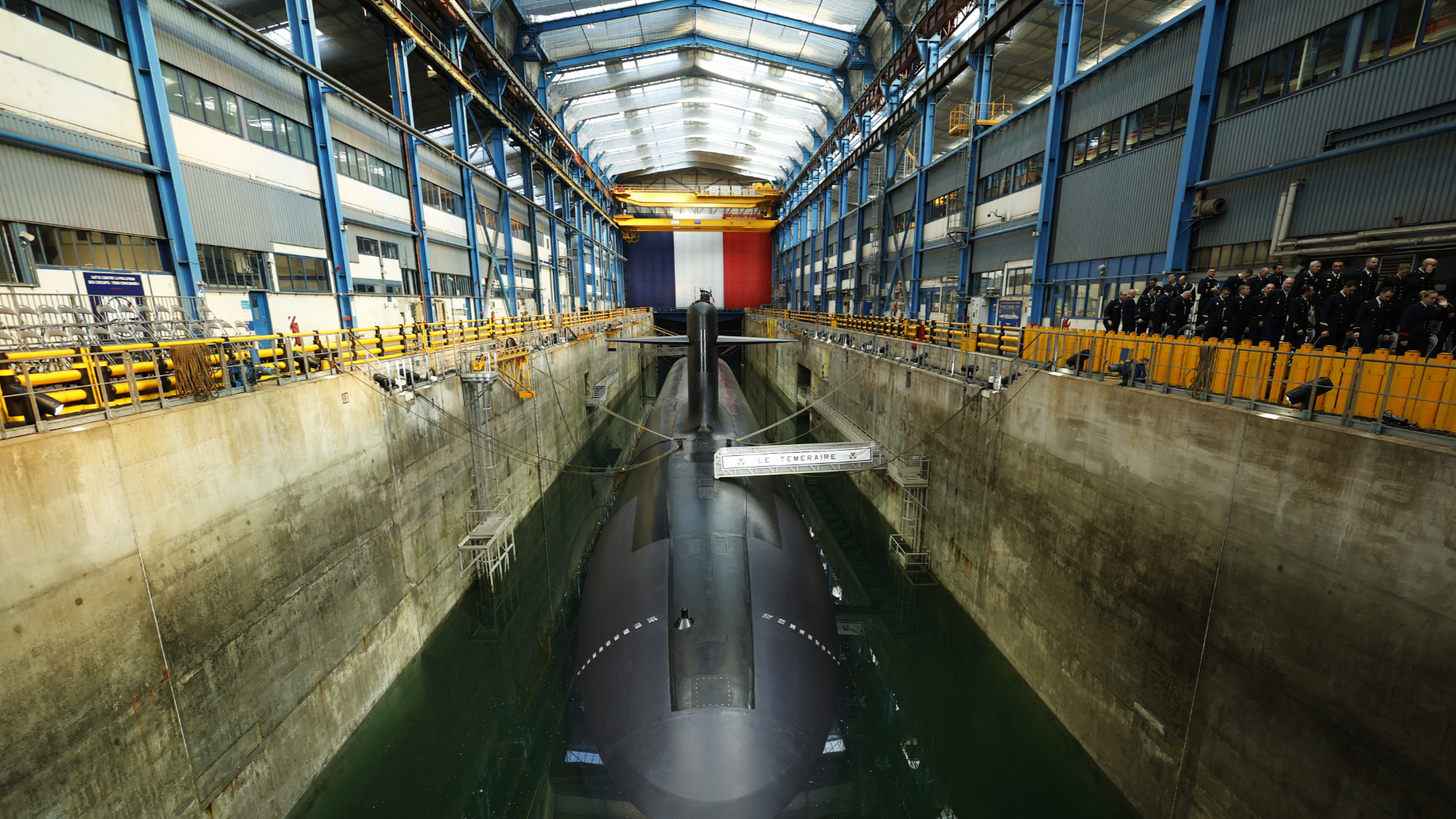 This photo shows French Navy nuclear-powered ballistic missile submarine (SSBN) submarine "Le Temeraire" - S617 in the Nuclear Submarine Navy Base of Ile Longue in Crozon, northwestern France on March 2, 2026. (PHOTO / AFP)