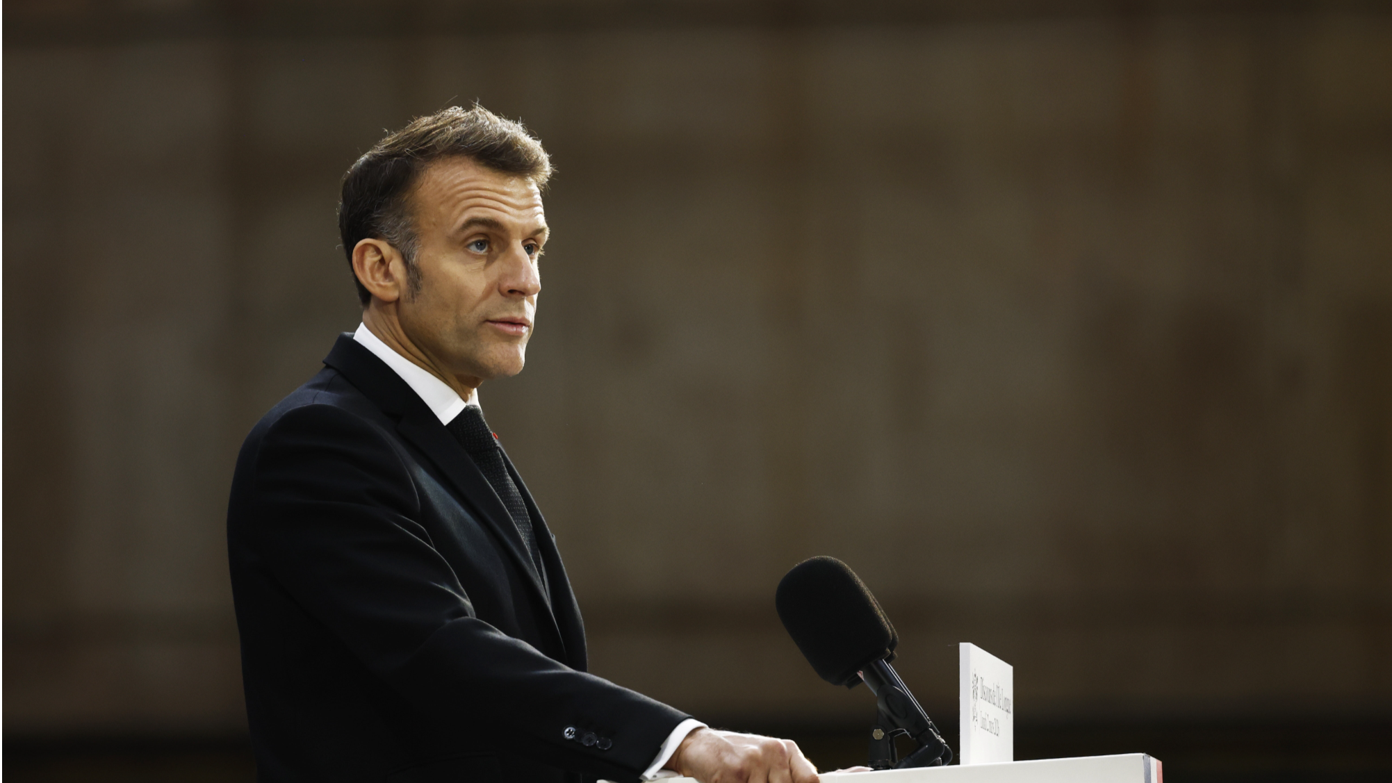 French President Emmanuel Macron delivers a speech next to the submarine 'Le Temeraire' (The Temerarious) at the Nuclear submarines Navy base of Ile Longue in Crozon, France, Monday March 2, 2026. (PHOTO / AP)