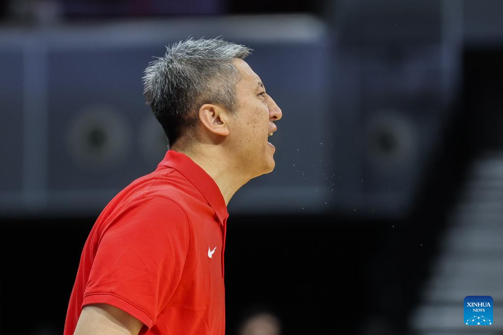 Coach Guo Shiqiang of China shouts instructions during the match between China and Chinese Taipei at the FIBA World Cup Asian Qualifiers in Pasay City, the Philippines, on March 1, 2026. (PHOTO / XINHUA)