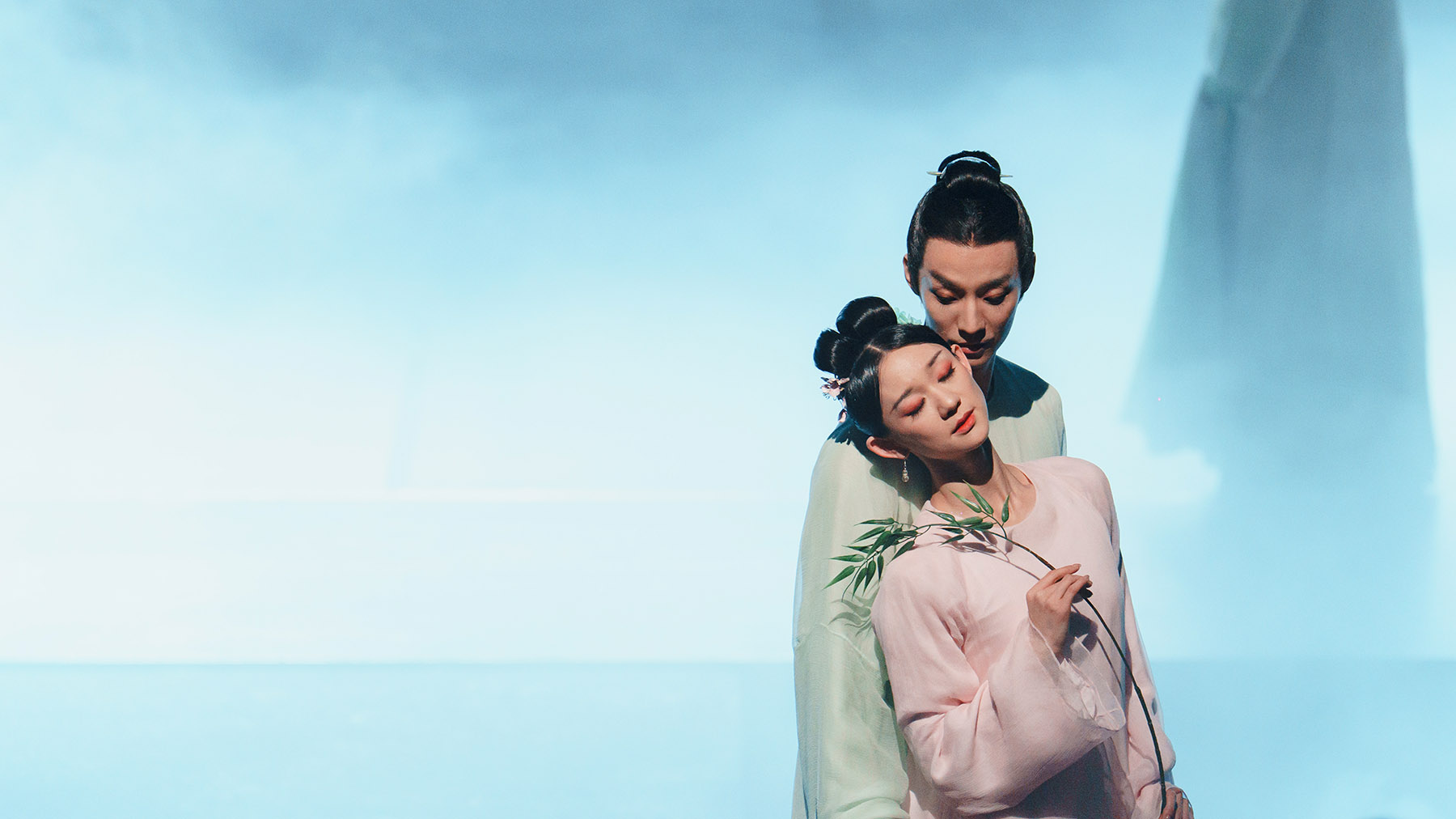 Hu Jie (front) stars as Du Liniang alongside Luo Yuwen as Liu Mengmei in the dance drama Dream in Peony Pavilion. Li Xing views the production not simply as a love story, but as a reflection on existence itself. (PROVIDED TO CHINA DAILY)