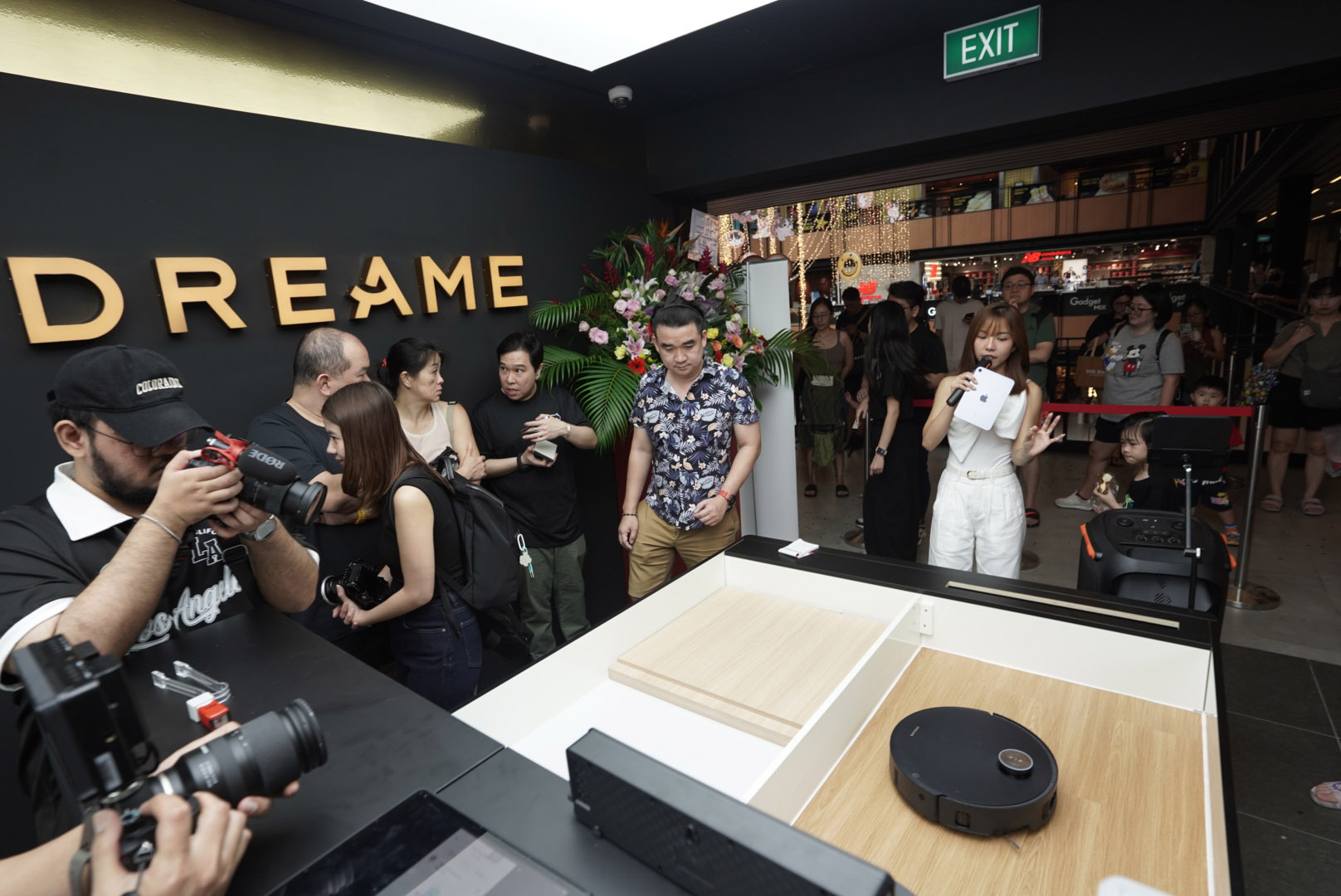 People take photos of a robot vacuum cleaner on the opening day of Dreame's flagship store in Singapore on Jan 3, 2026. (PROVIDED TO CHINA DAILY)