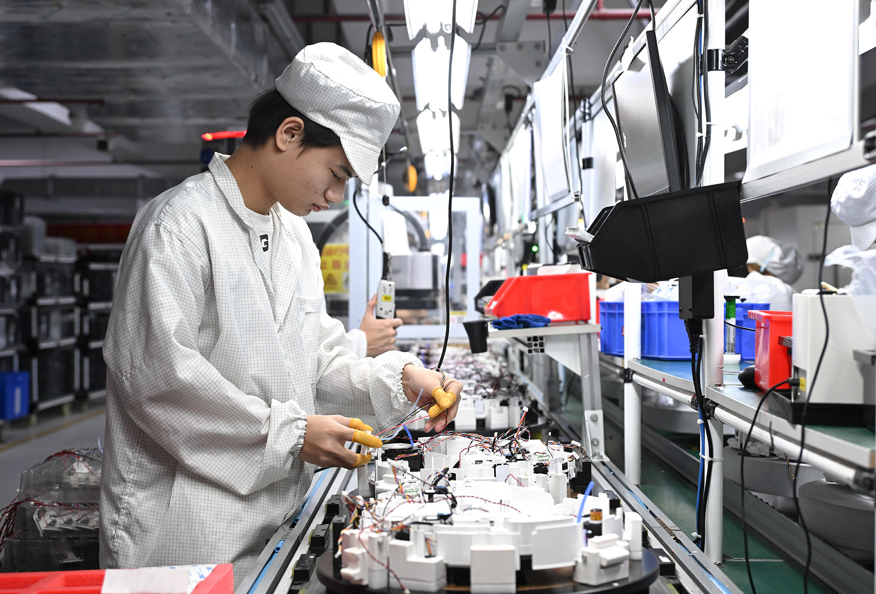 A technician works on a robot vacuum cleaner assembly line at a workshop of Roborock in Huizhou, Guangdong province, on Oct 10, 2025. (PHOTO / XINHUA)