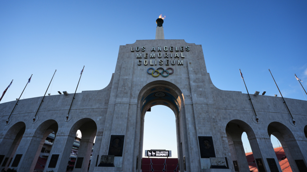 The Olympic cauldron is lit at the Los Angeles Memorial Coliseum ahead of the launch for ticket registration to the 2028 Summer Olympic Games, in Los Angeles on Jan 13, 2026. (PHOTO / AP)
