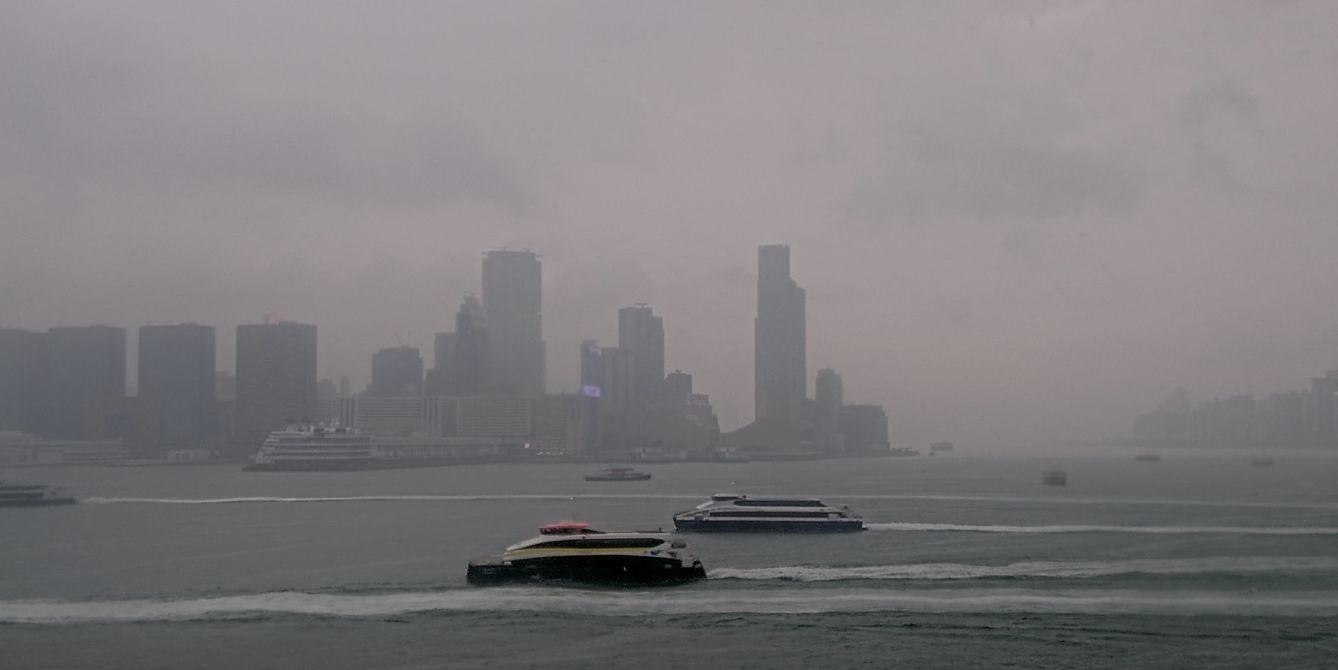 This photo taken at Central Pier automatic weather station at 1:05pm on April 4, 2026 shows Victoria Harbour, as rain poured on Hong Kong. (COURTESY OF HONG KONG OBSERVATORY)