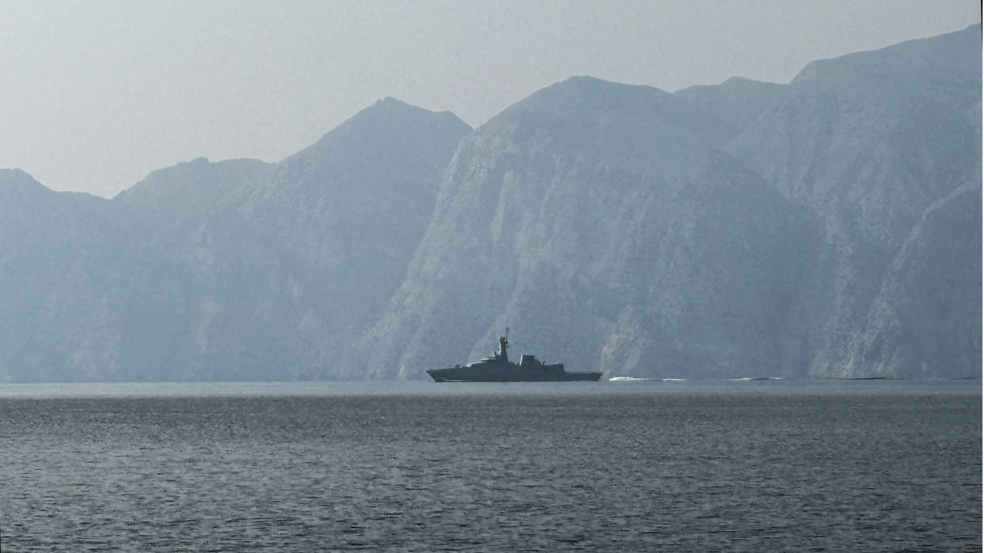 A navy vessel is seen sailing in the Strait of Hormuz, a vital waterway through which much of the world's oil and gas passes on March 1, 2026. (PHOTO/AFP)