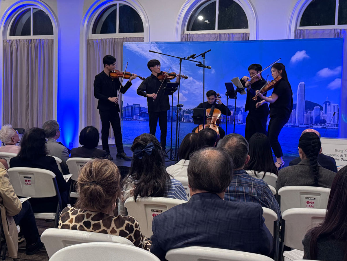 At a Hong Kong cultural evening held on Monday at the Chinese American Museum in Los Angeles, the ensemble presented a program that blended Western classical works with music rooted in Hong Kong's cultural identity. Pieces included Over the Harbour, a contemporary composition inspired by Victoria Harbour, and beloved songs such as Below the Lion Rock.