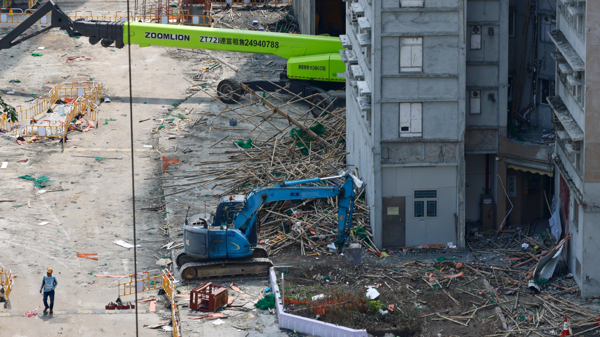 Multiple emergency response teams were formed but could not enter due to falling bamboo scaffolding and debris blocking the entrance. Hui later expressed surprise that Ho had reached such a high floor so quickly under extreme fire conditions.
