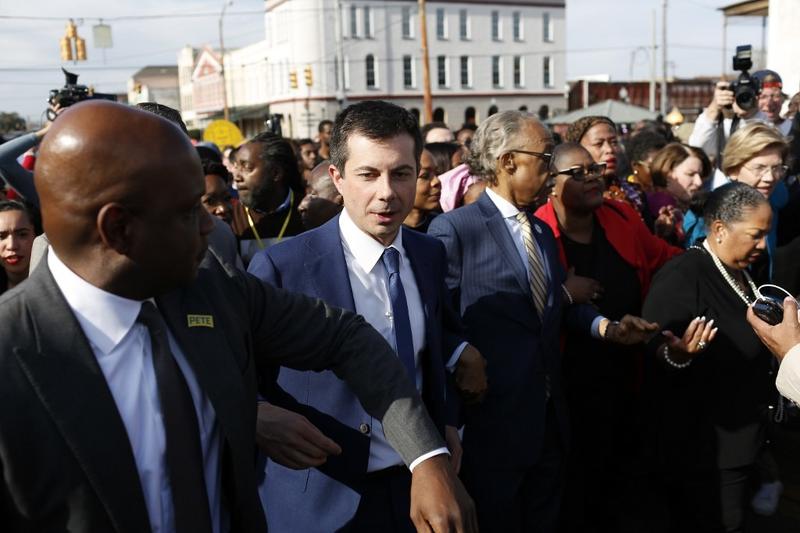 Democratic presidential candidate, former South Bend Mayor Pete Buttigieg marches during the Annual Bloody Sunday March across the Edmund Pettus Bridge in Selma, Alabama on March 1, 2020. (JOSHUA LOTT / AFP)