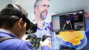 A visitor tries out Canon's VR medical solution during an expo in Shanghai. (PHOTO / XINHUA)