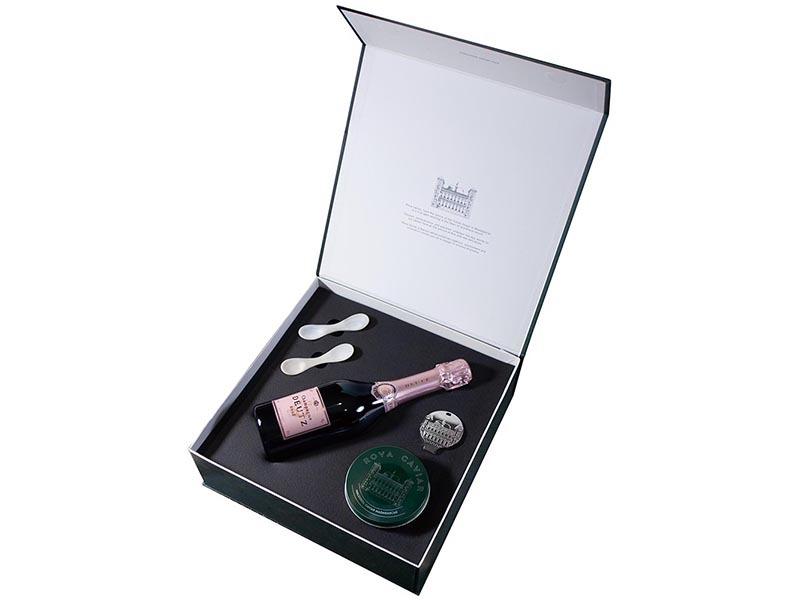 Romantic caviar and champagne duo pairing gift box (Baeri Royal Caviar 125g and Champagne Deutz Rosé 375ml), Rova Caviar