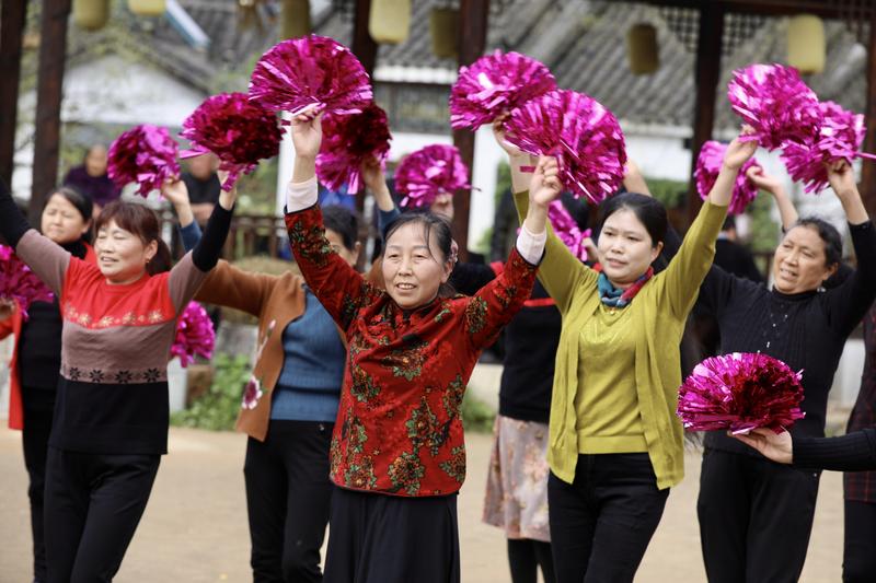 Residents perform a welcoming dance for tourists. (ZHU XINGXIN / CHINA DAILY)