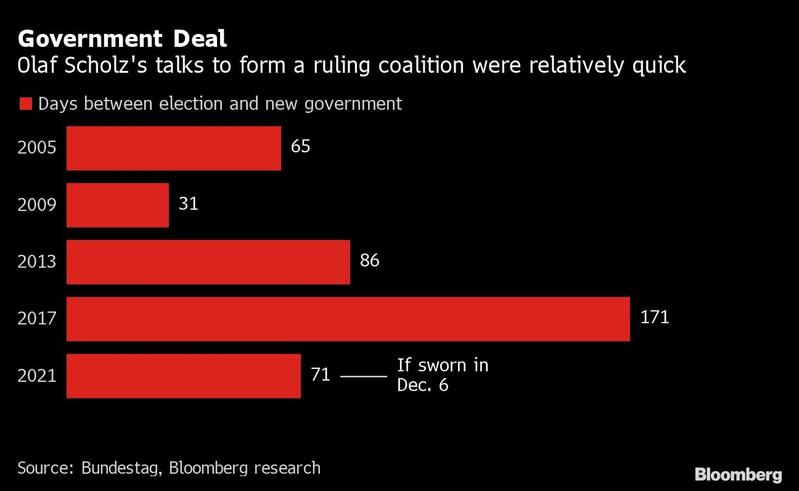 Scholz’s alliance has come together quickly by German standards, especially considering the policy differences. The Social Democrats narrowly beat Merkel’s conservatives in the Sept 26 election, and the fragmented political landscape left little alternative to forming a government.