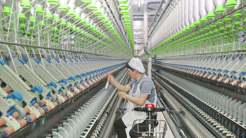 A woman works at a textile company in Nantong, east China's Jiangsu province, Feb 24, 2023. (PHOTO / XINHUA)