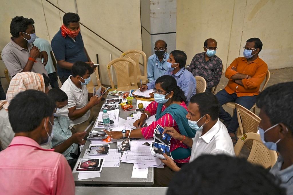 Officials display pictures of victims for family members to identify bodies at a business park used as temporary mortuary for the dead recovered from the carriage wreckage of a three-train collision near Balasore, in India's eastern state of Odisha, on June 4, 2023. Authorities were scrambling on June 4 to understand the cause of a three-train collision in India that killed at least 288 people, claiming that "no one responsible" will be spared. In sweltering heat, many of the bodies were being transferred to bigger centres and officials suggested some would only be identified by DNA testing. (PHOTO / AFP)
