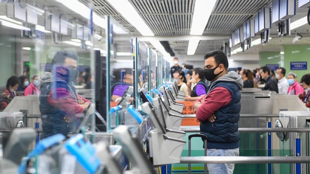 A foreign tourist waits for customs clearance at the entry inspection hall of Luohu Port in Shenzhen, south China's Guangdong province, on March 15, 2023. (PHOTO / XINHUA)