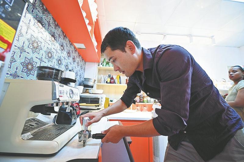 Dilxat Tursun makes coffee for customers. (PHOTO / XINHUA)
