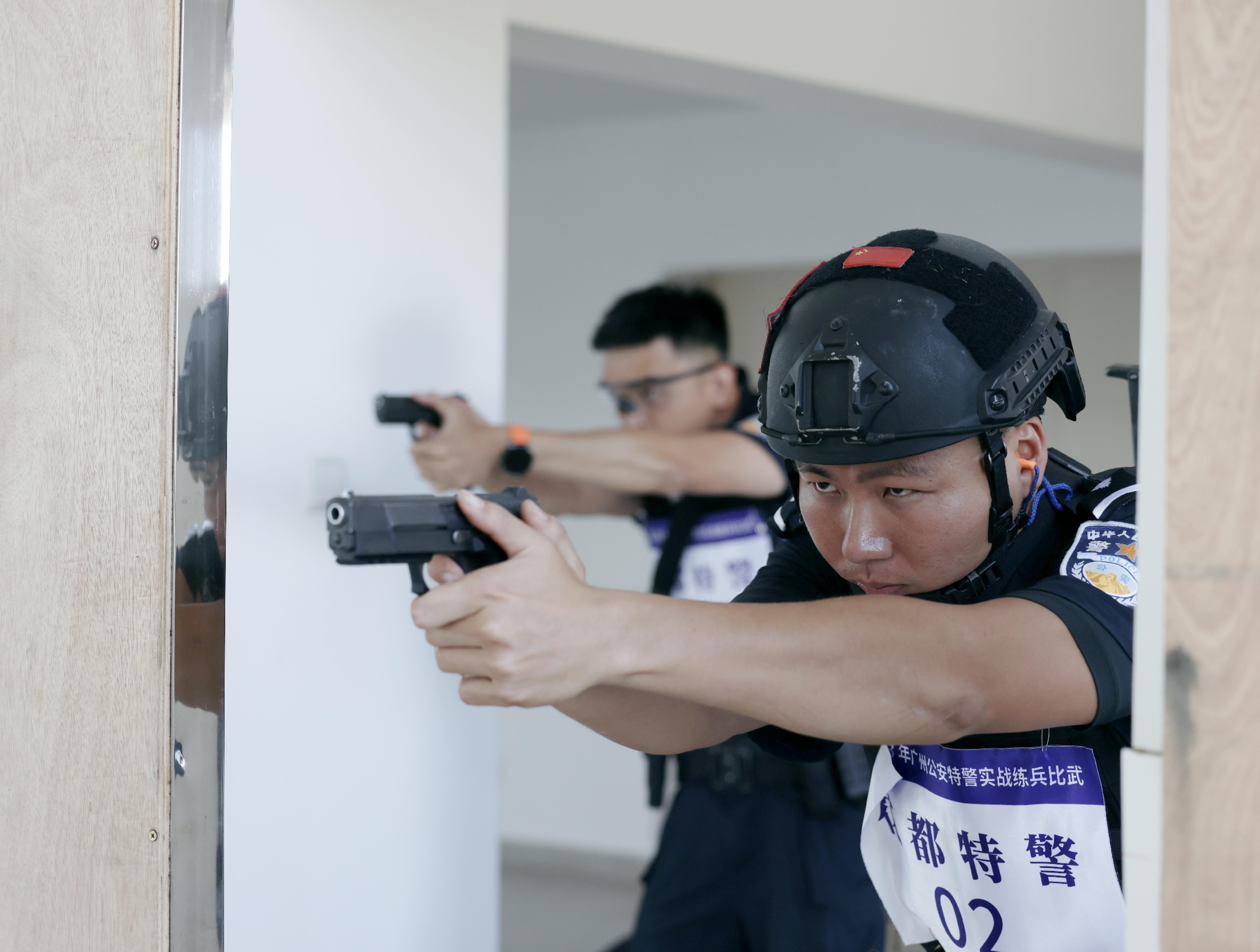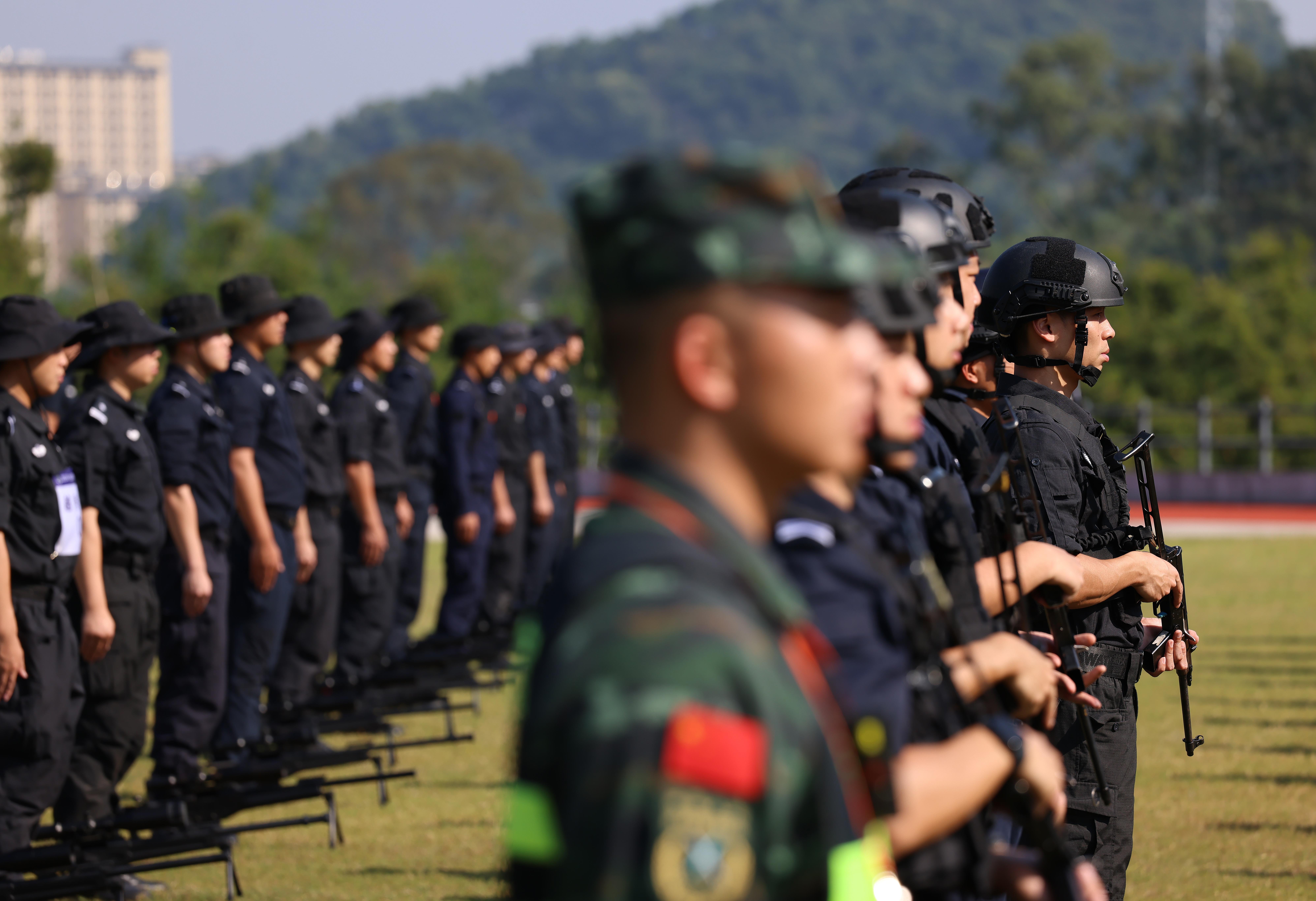 The sounds of gunfire emerge sporadically from a police training base on a cloudless Tuesday afternoon in Guangzhou. Fear not, it's no gunfight. The 2023 Guangzhou Public Security Special Police Combat Training Competition is going on in the capital city of Guangdong province.