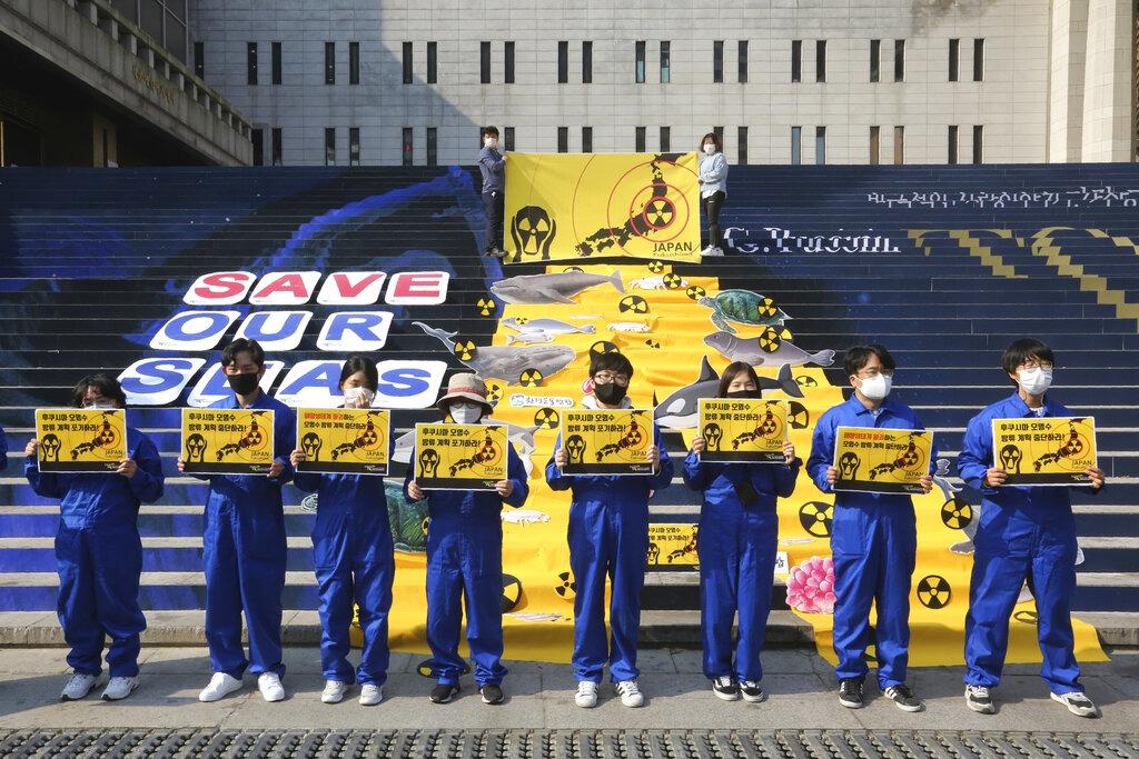 Environmentalists in South Korea stage a rally in Seoul against Japan's disposal plan of nuclear-contaminated water from the crippled Fukushima Daiichi Nuclear Power Plant on Oct 26, 2020. (PHOTO / AP)